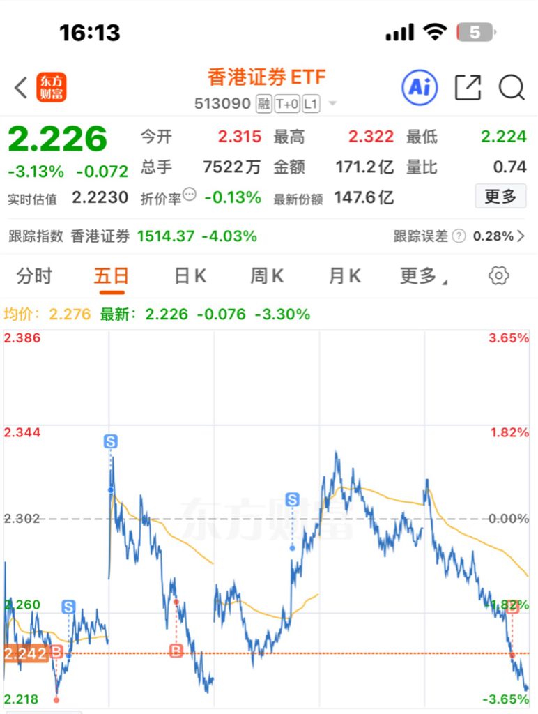 $香港证券ETF(SH513090)$ 我觉得今天会跌,但没想过跌成这样。就这样吧,又要等两天才能操作了。周末好无聊。