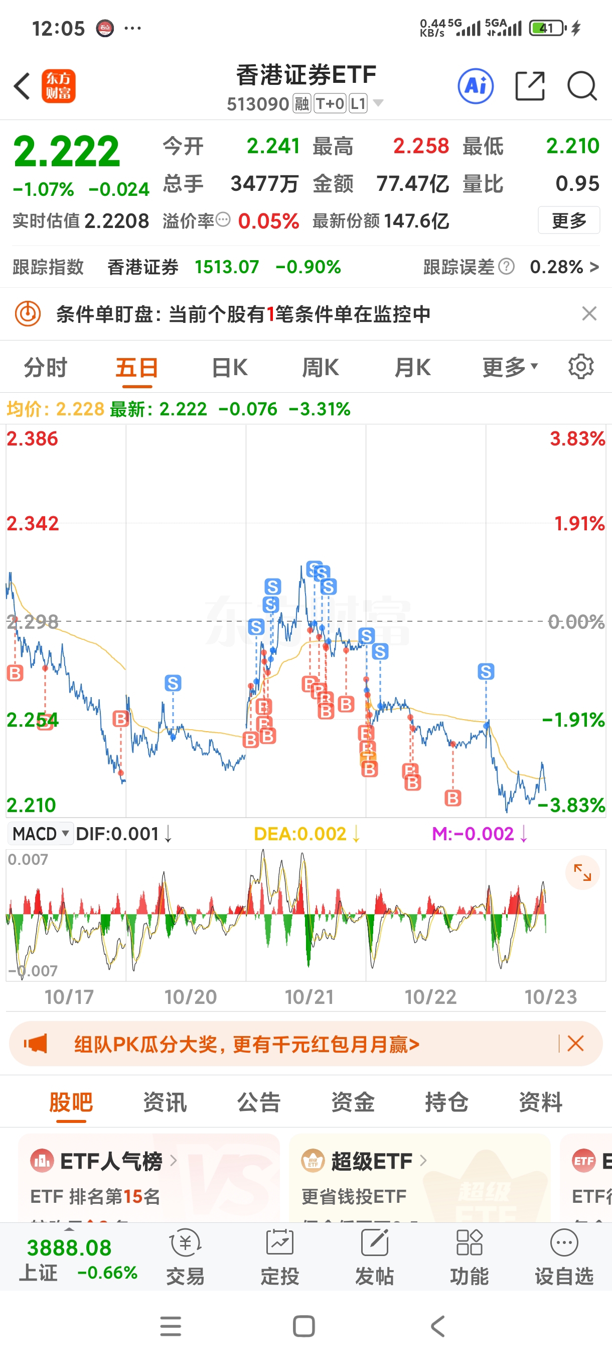 $香港证券ETF(SH513090)$ 暂时先管住手,怕直接来一坨大的。