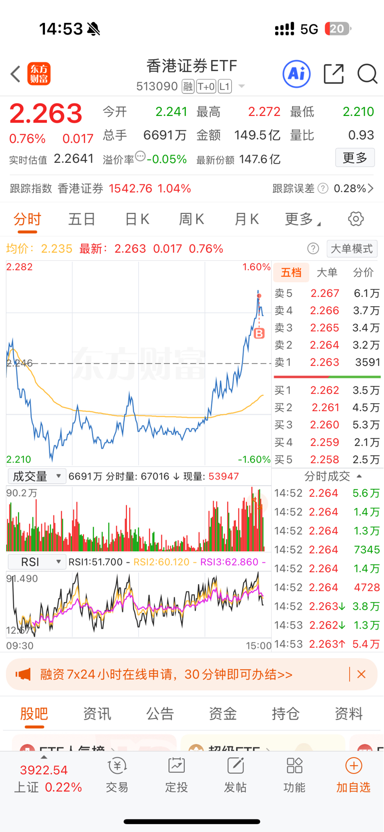 $香港证券ETF(SH513090)$ 又买最高点了?