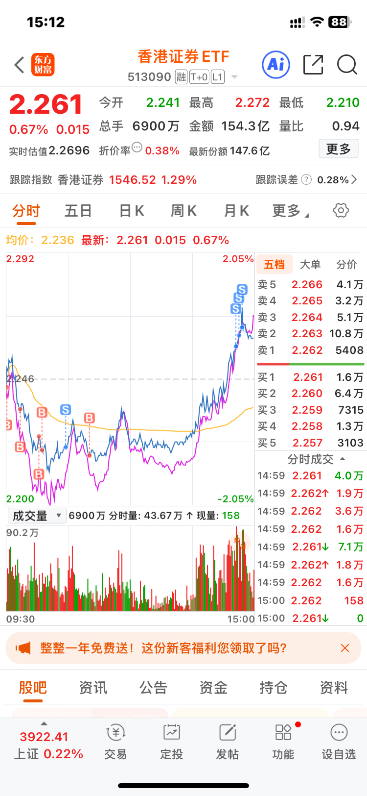 $香港证券ETF(SH513090)$ 留6层仓