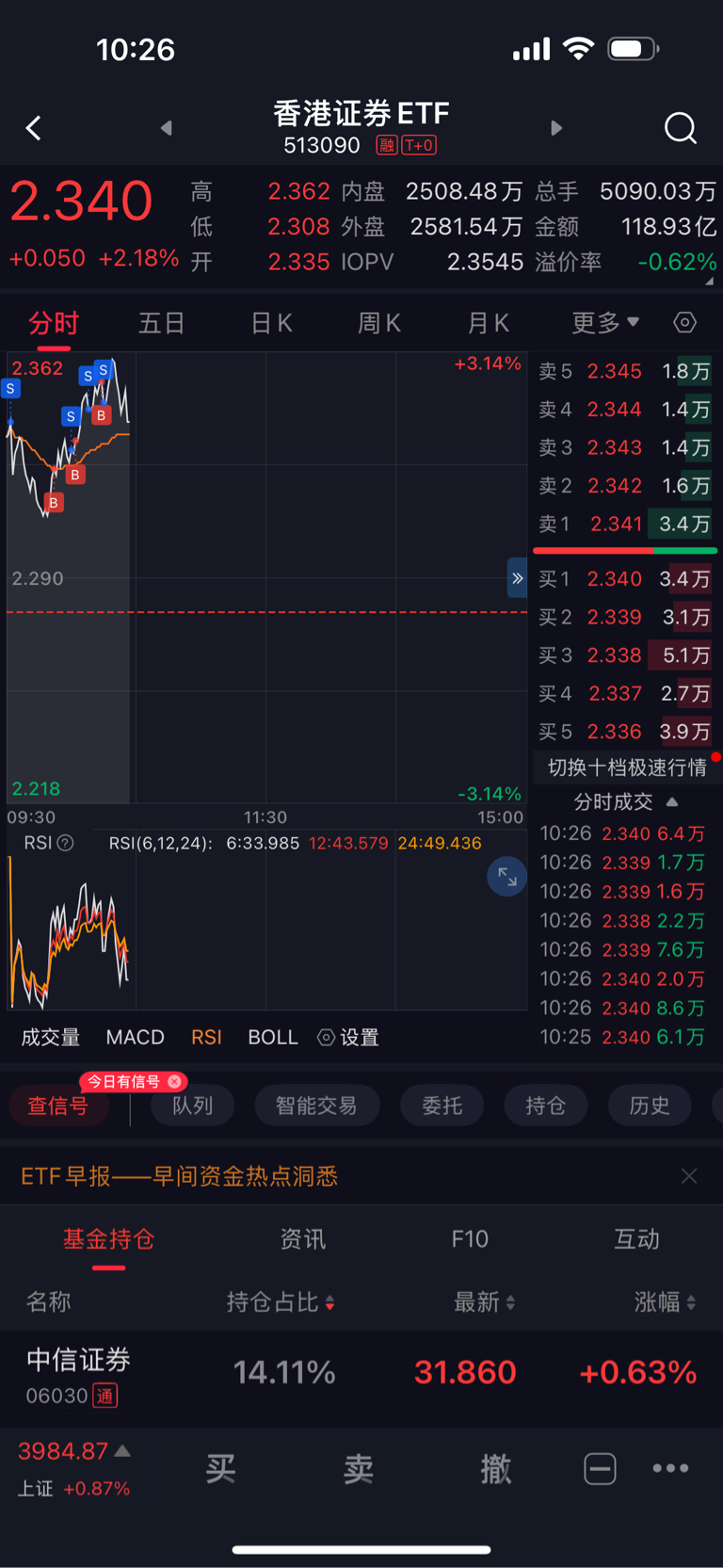 $香港证券ETF(SH513090)$ 今天上午差一点就完美了