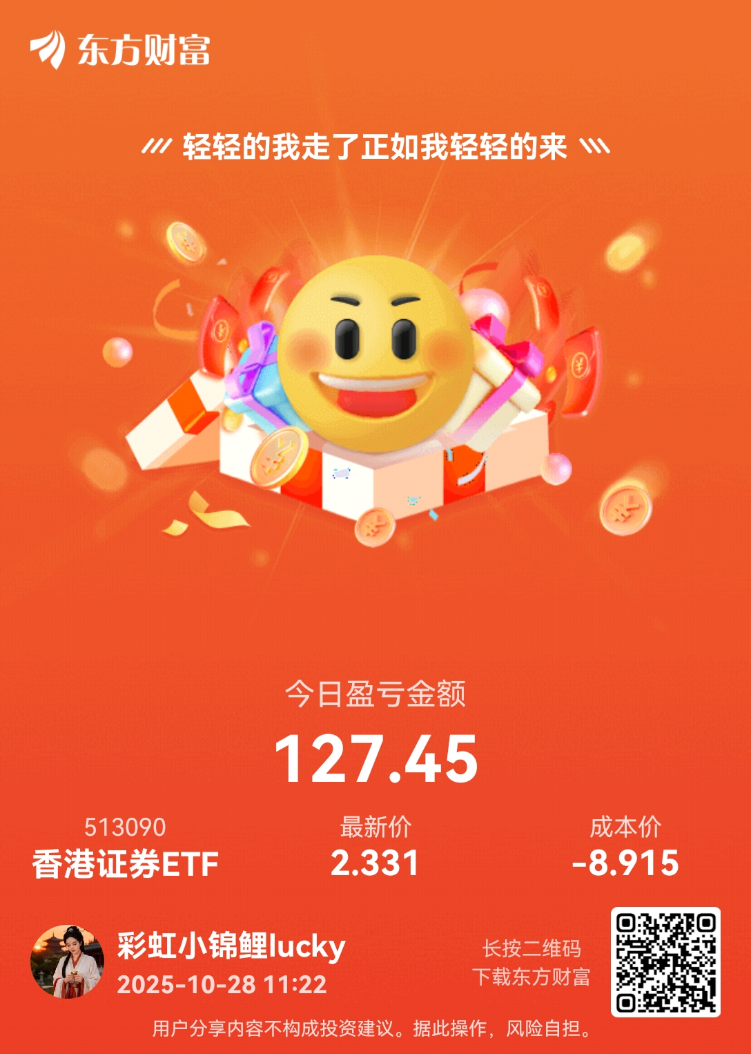 $香港证券(SH513090)$ 做了一个小T赚点零食钱