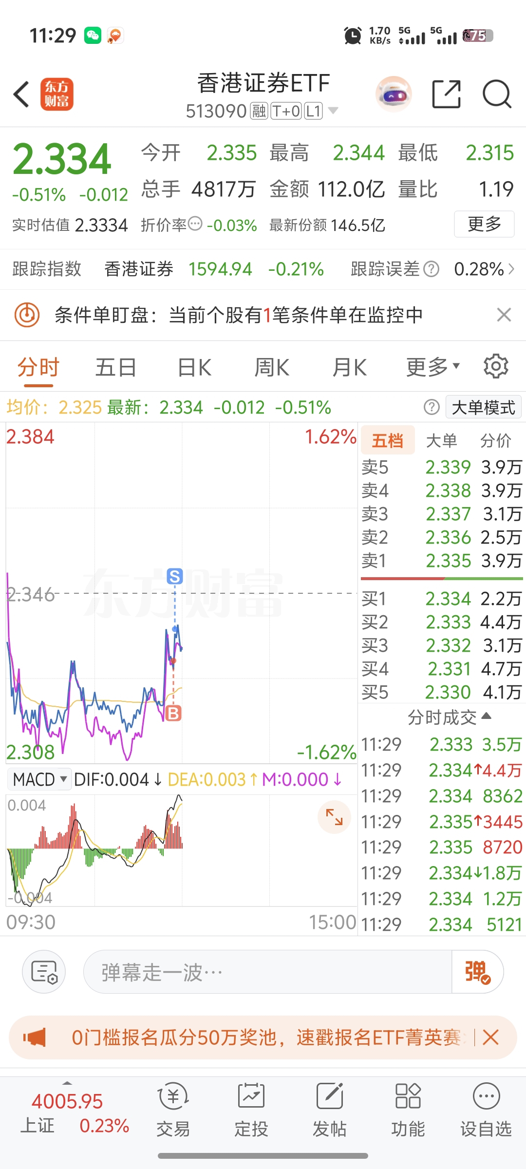 $香港证券ETF(SH513090)$ 一天一天操作2次就行稳稳当当喝杯豆浆