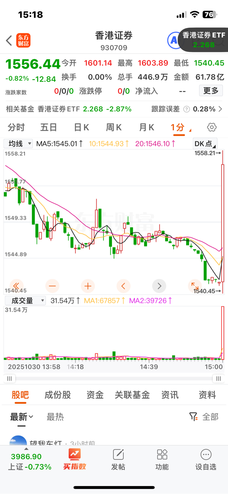$香港证券ETF(SH513090)$ 今天没跑的偷着乐把