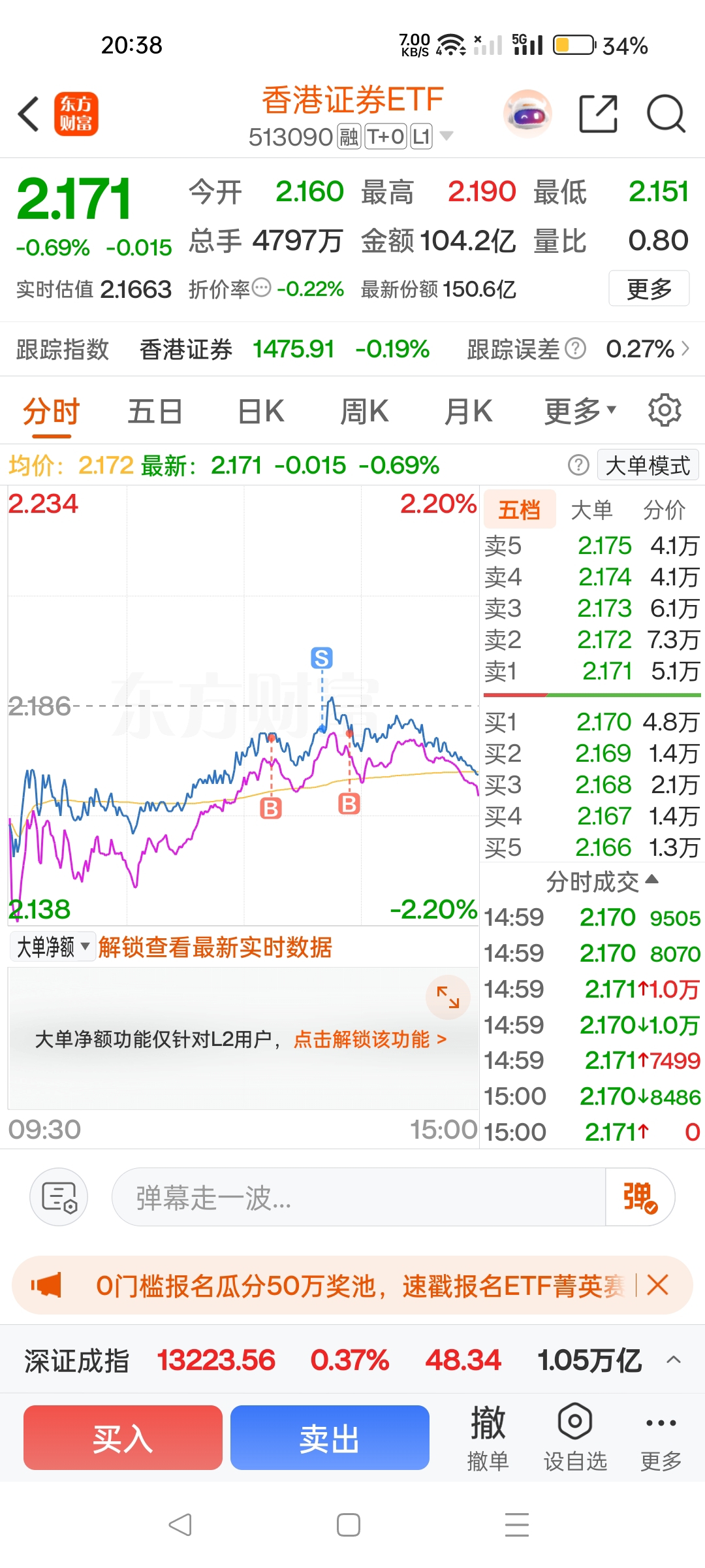$香港证券ETF(SH513090)$ 这真会偷吃,下午不是跌0.69吗?为什么晚上跌0.17多的钱鬼偷来吃了呀