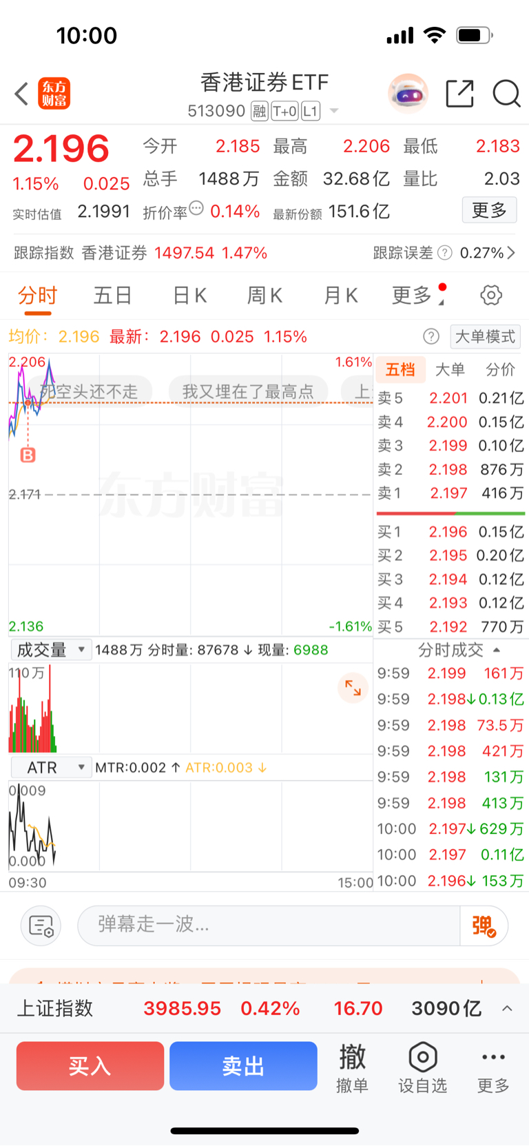 $香港证券ETF(SH513090)$ 上个洗手间回来就这样