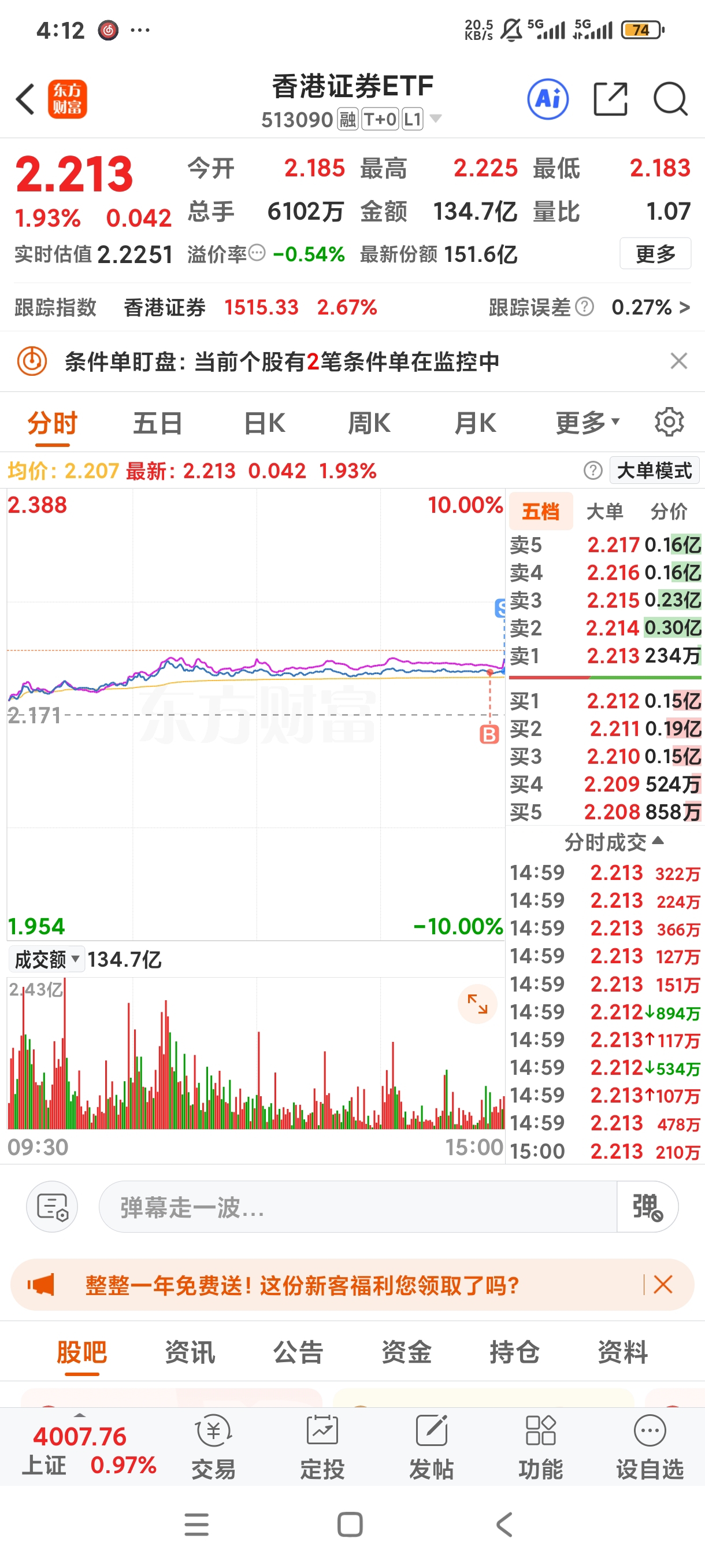 $香港证券ETF(SH513090)$ 有大佬指点指点么,这个溢价为什么是负的?负的的话是好还是坏?另外的话最后4:00香港收盘之后是,指数明显比这个etf涨幅要大,那为什么持仓最大的中信却跳水,想问一下香港的早盘是什么时候开盘,难道这个跟收盘关系没多大,主要是跟早上集合竞价快开盘关系很大么?