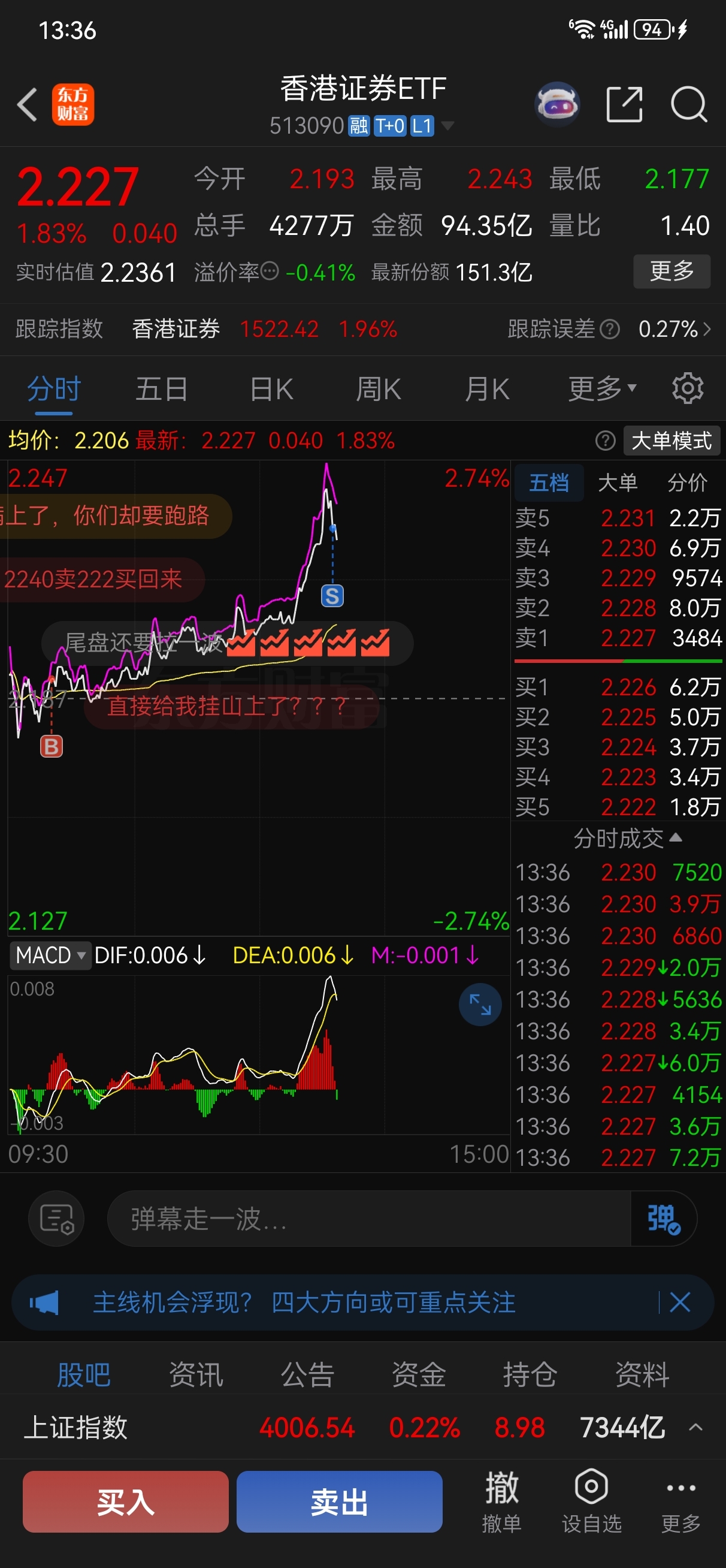 $香港证券ETF(SH513090)$ 我能说我今天亏大发了吗,早上卖的一个两个票都涨停了