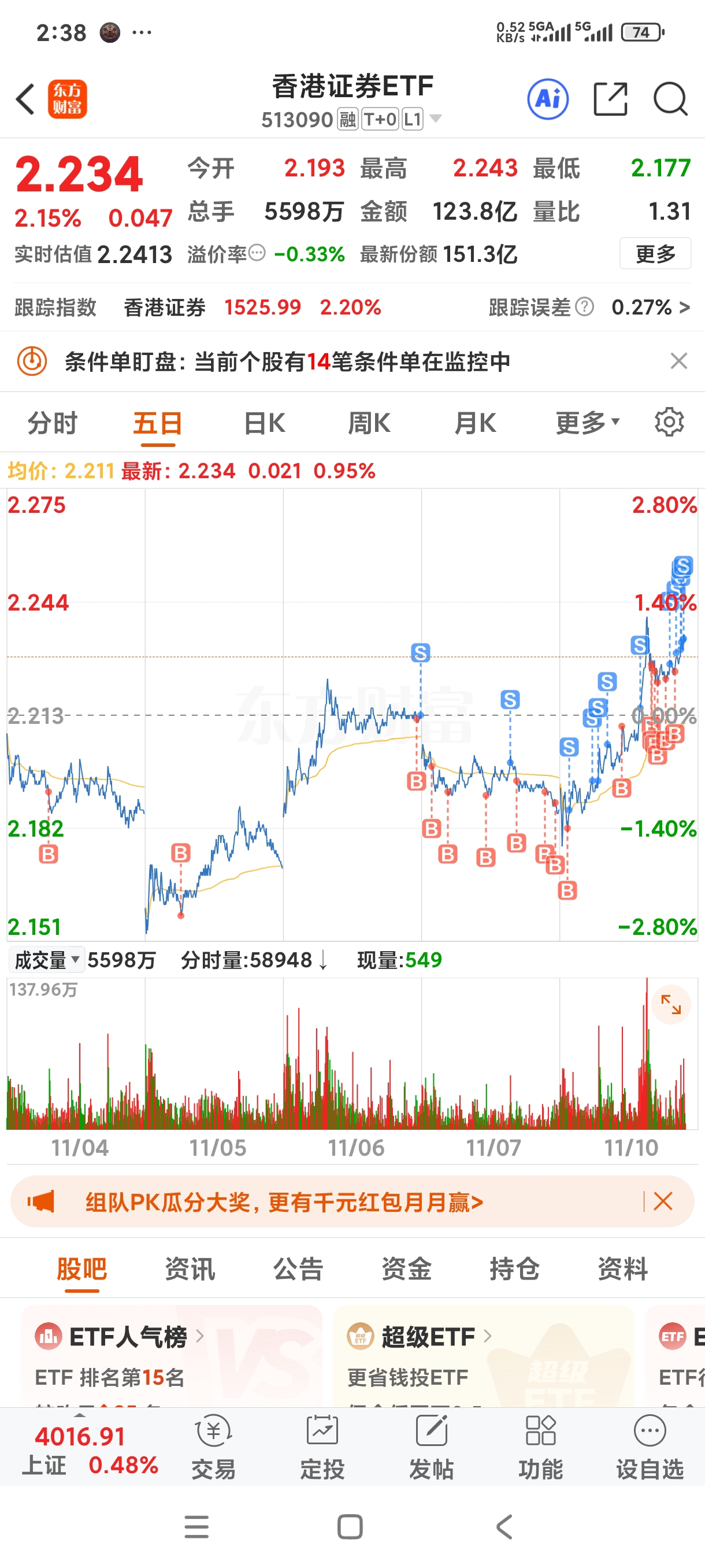 $香港证券ETF(SH513090)$ 人工量化,我是主力