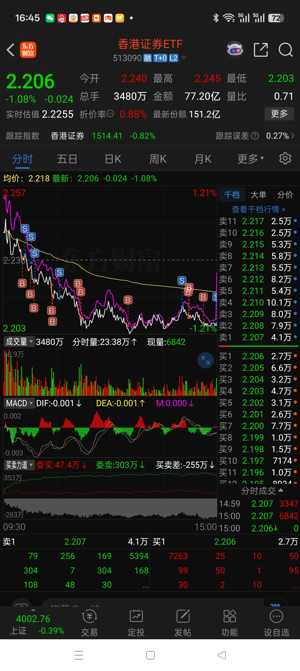 $香港证券ETF(SH513090)$ T了一天,平价出了,收盘你拉这么高,无语该留一半。