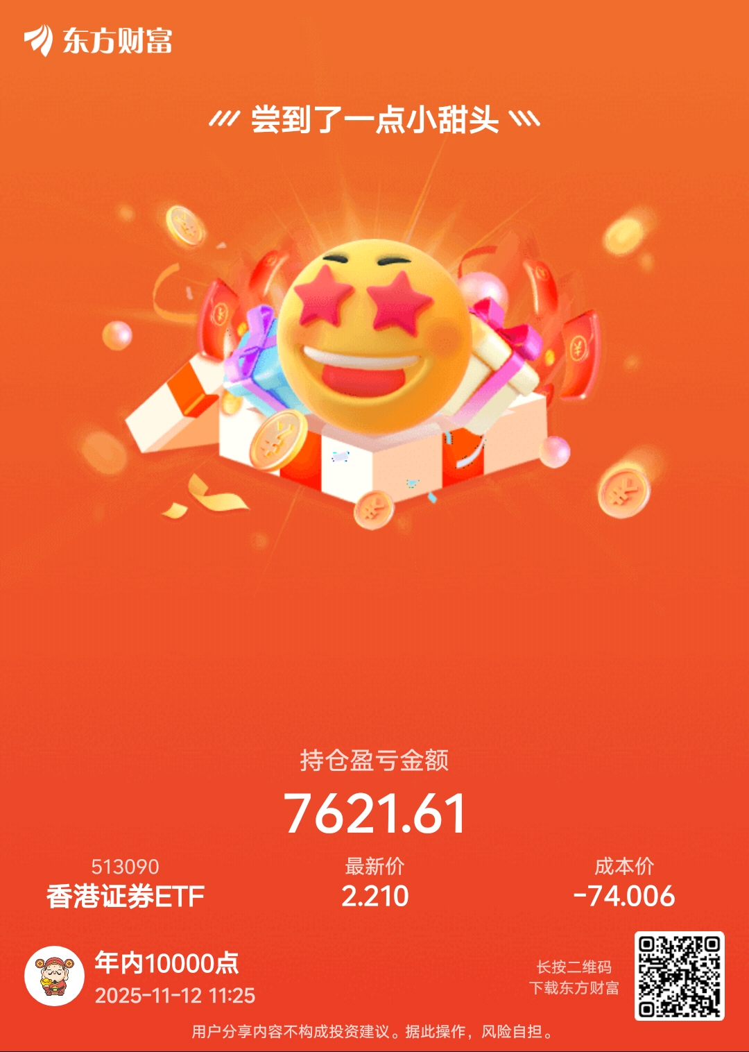 $香港证券ETF(SH513090)$ 感谢主力今天赚了最后100,大盘昨天就不行了,香港证券全抛了,休整下个波段再来