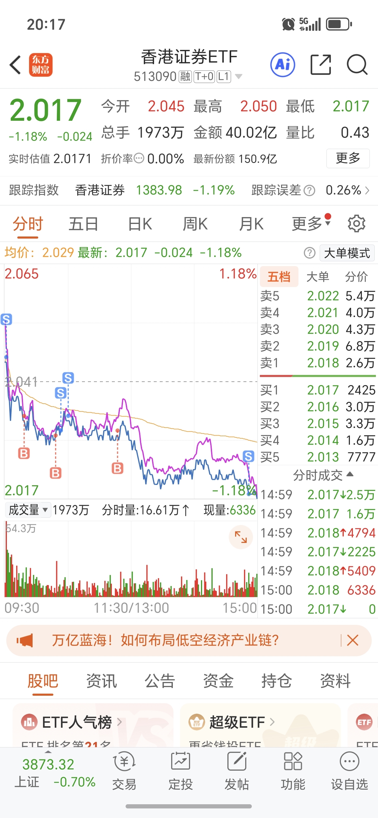 $香港证券ETF(SH513090)$ 还是红,底仓不变,明天又冲