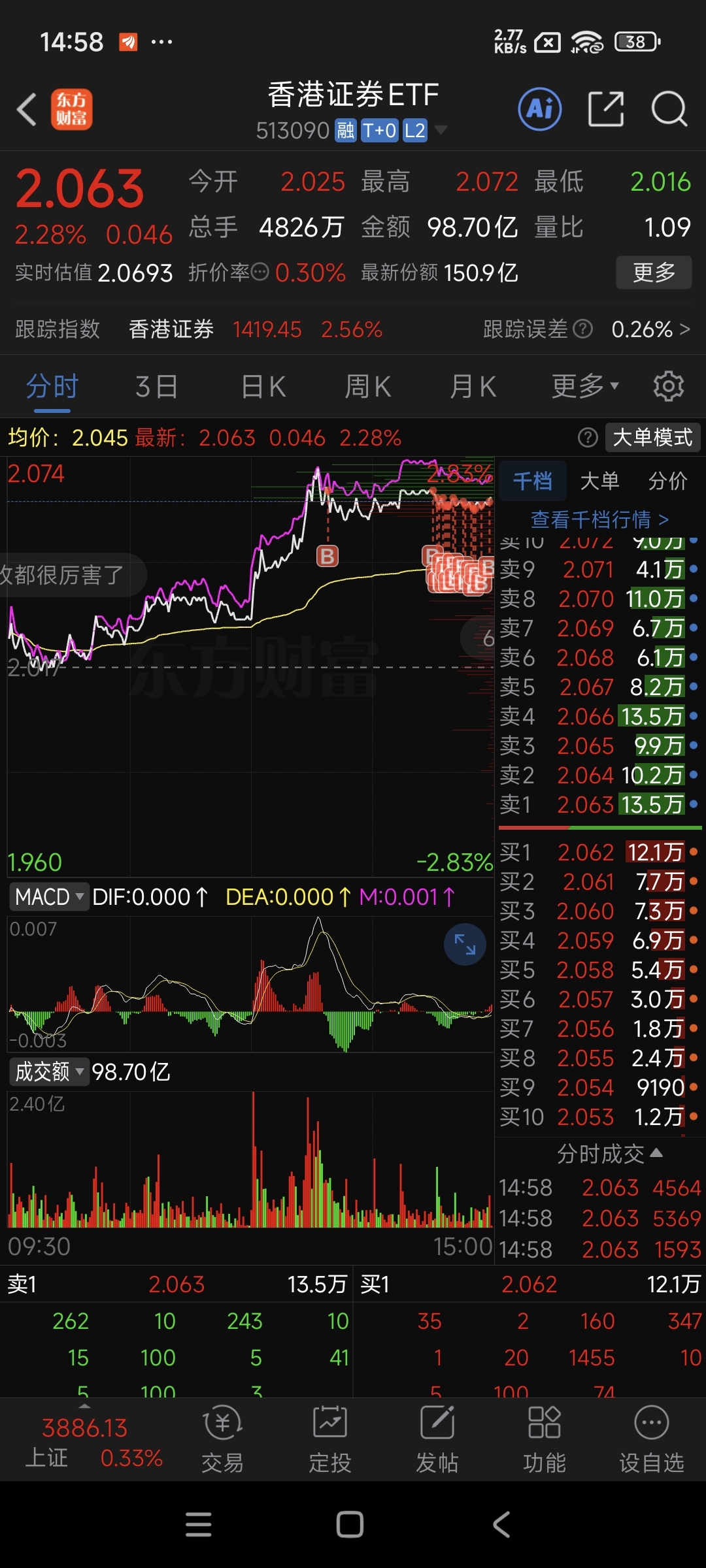 $香港证券ETF(SH513090)$ 测试 批量挂单买入
