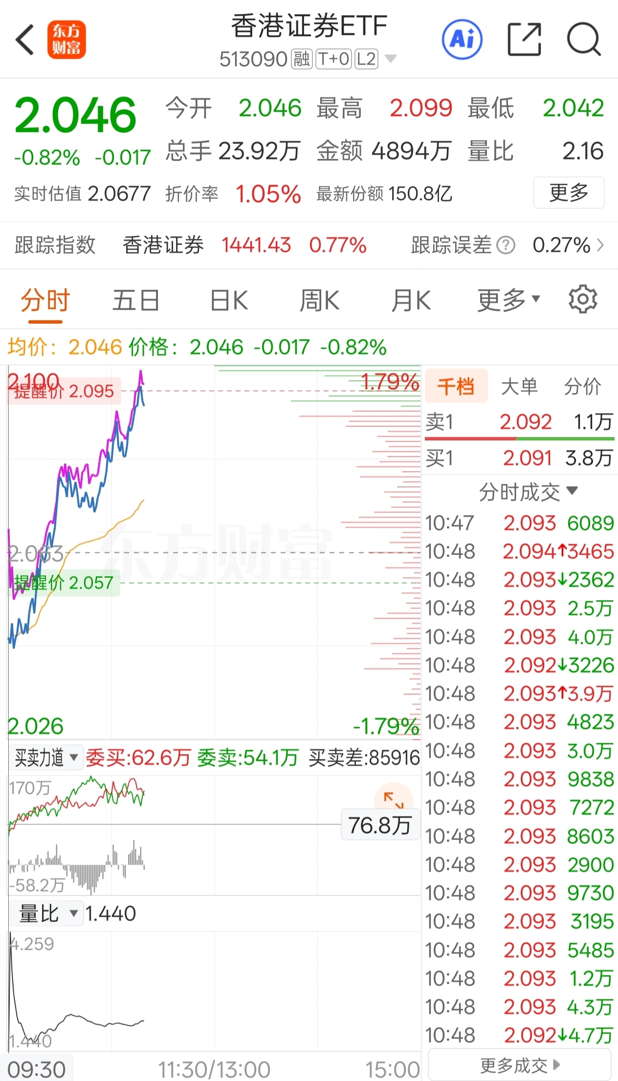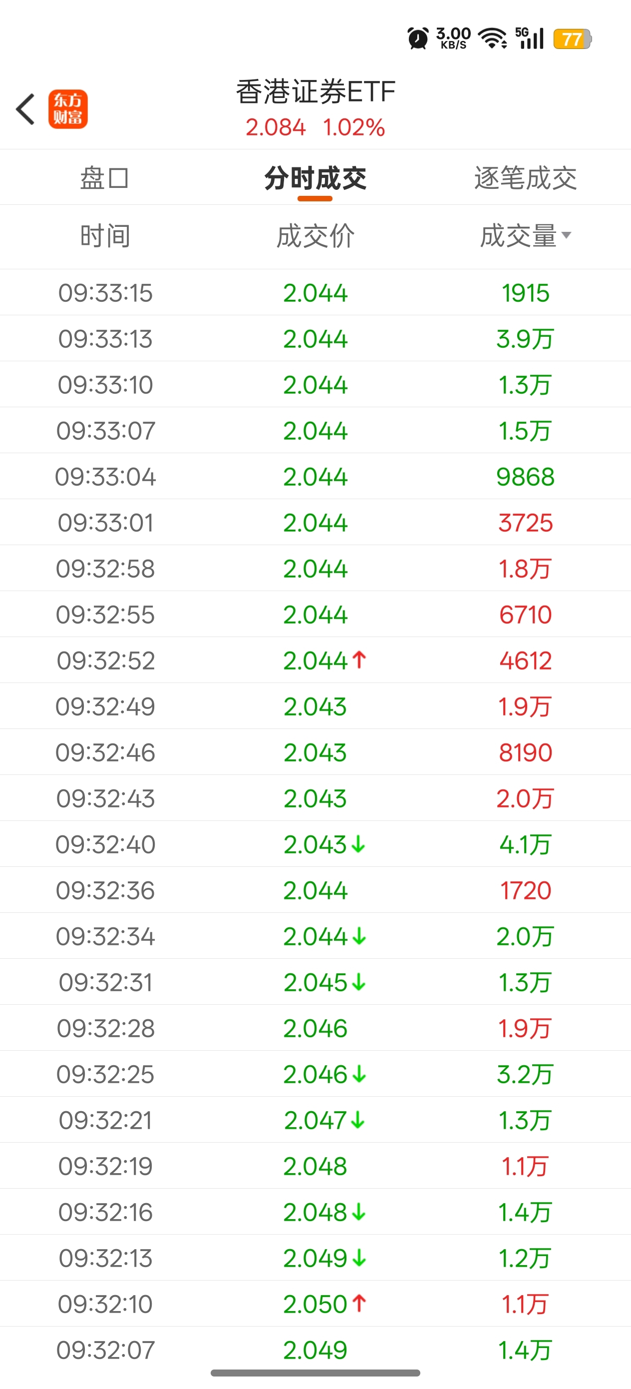 $香港证券ETF(SH513090)$ 开盘低开和下杀都预判对了,但是没考虑折价,所以才挂的2.042,如果挂2.044应该就能百分百抄底成功,可惜了。现在忙完已经是2.084了,不敢追了,以后玩证券还是要多研究一下上证指数 。