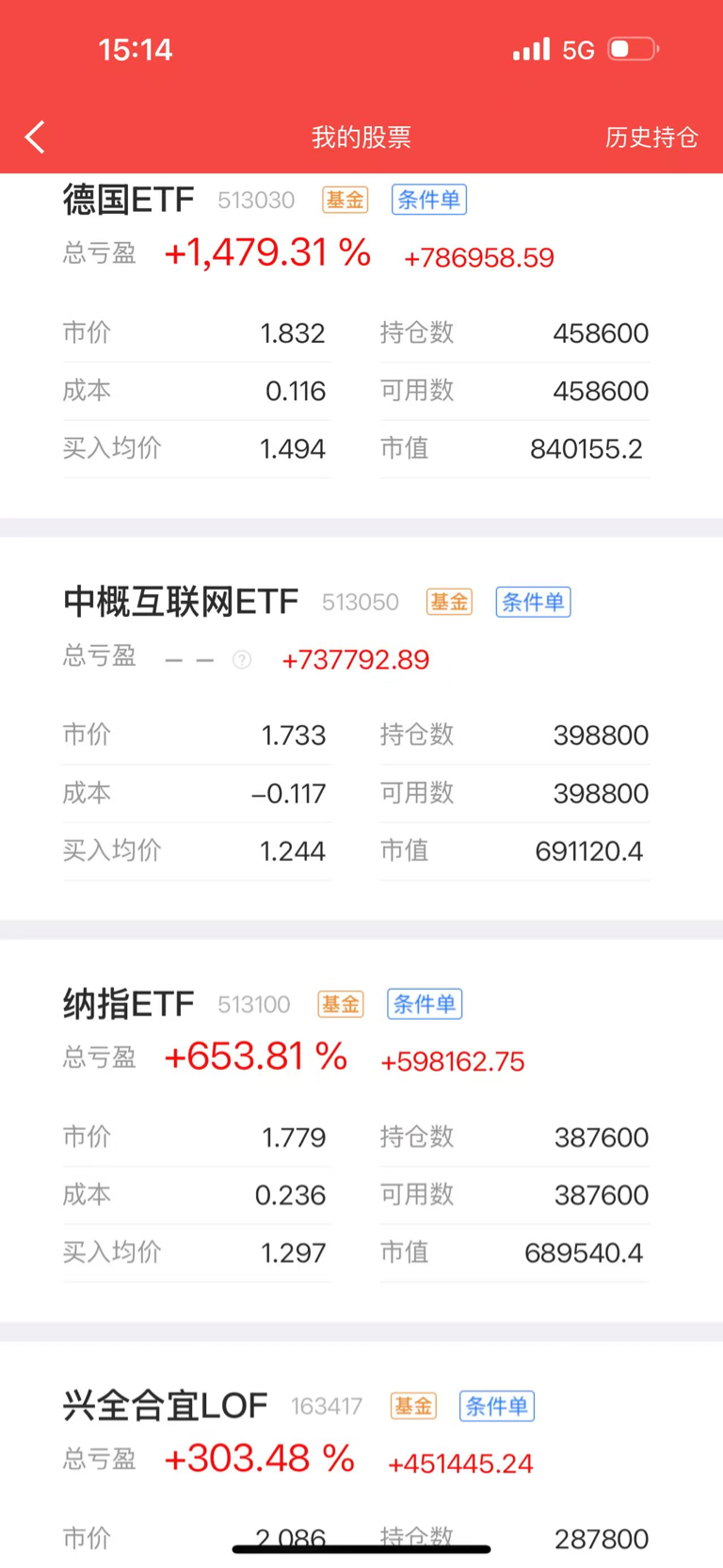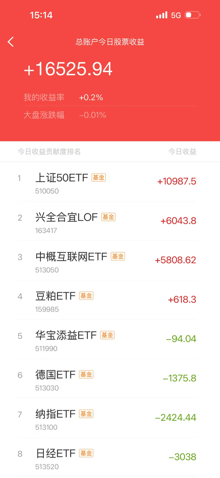 定投第2621天,今日卖出纳指ETF16000股,今日盈亏+1.65万元,累计盈