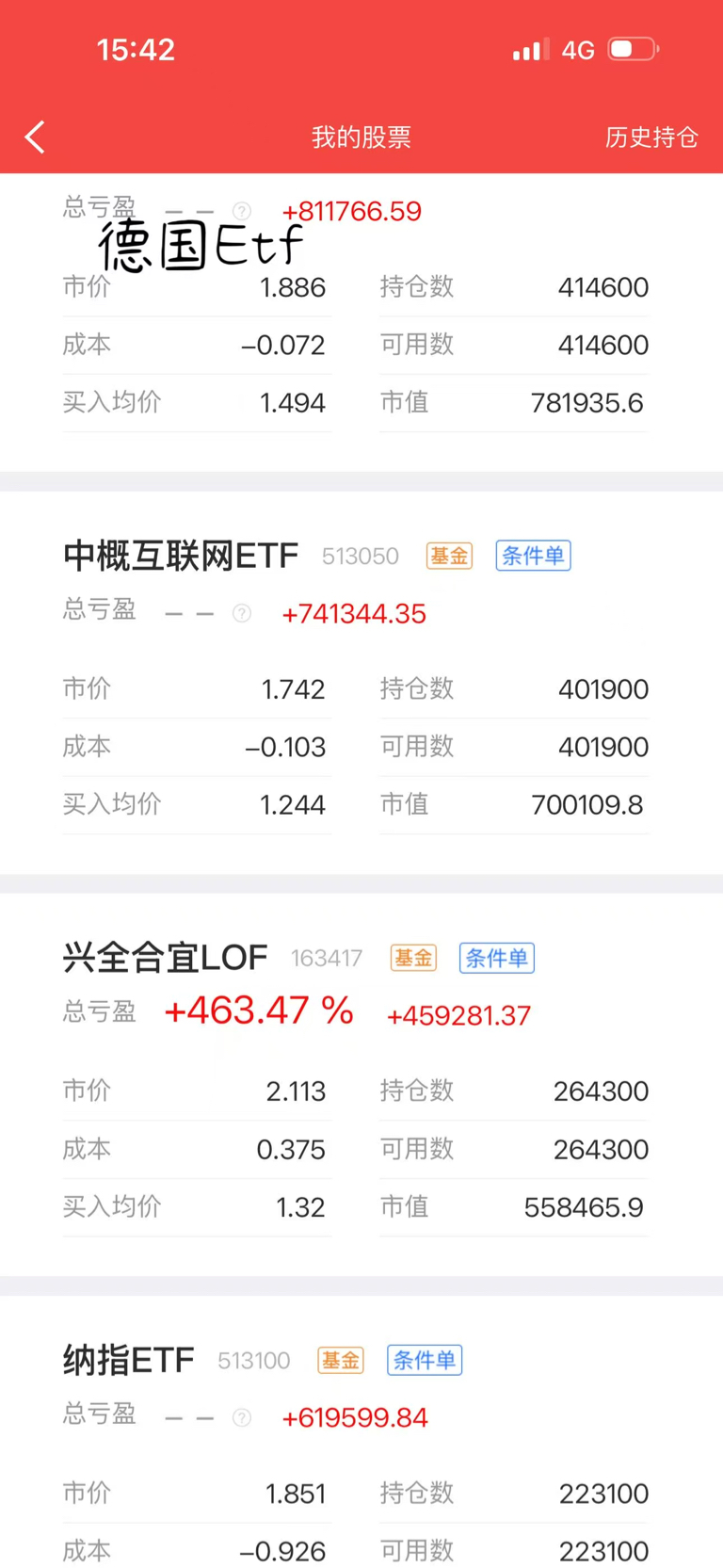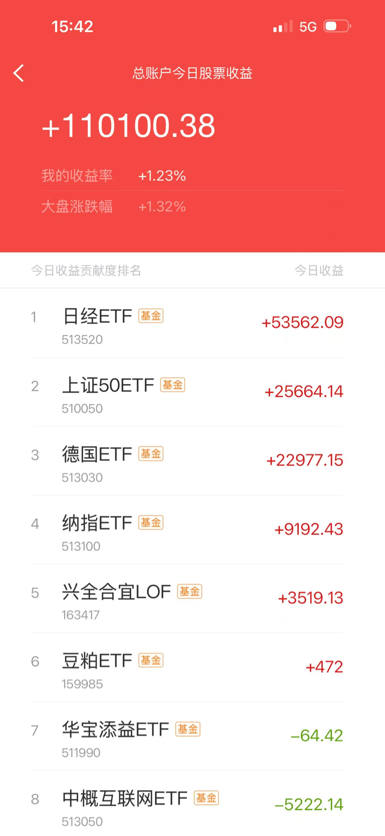 定投第2635天,今日卖出纳指ETF24800股,今日盈亏+11万元,累计盈亏+
