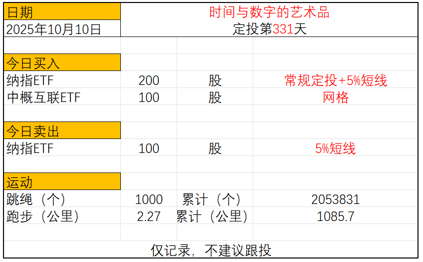 运动与投资第331天2025年10月10日今日定投:纳指ETF买入200股中概互