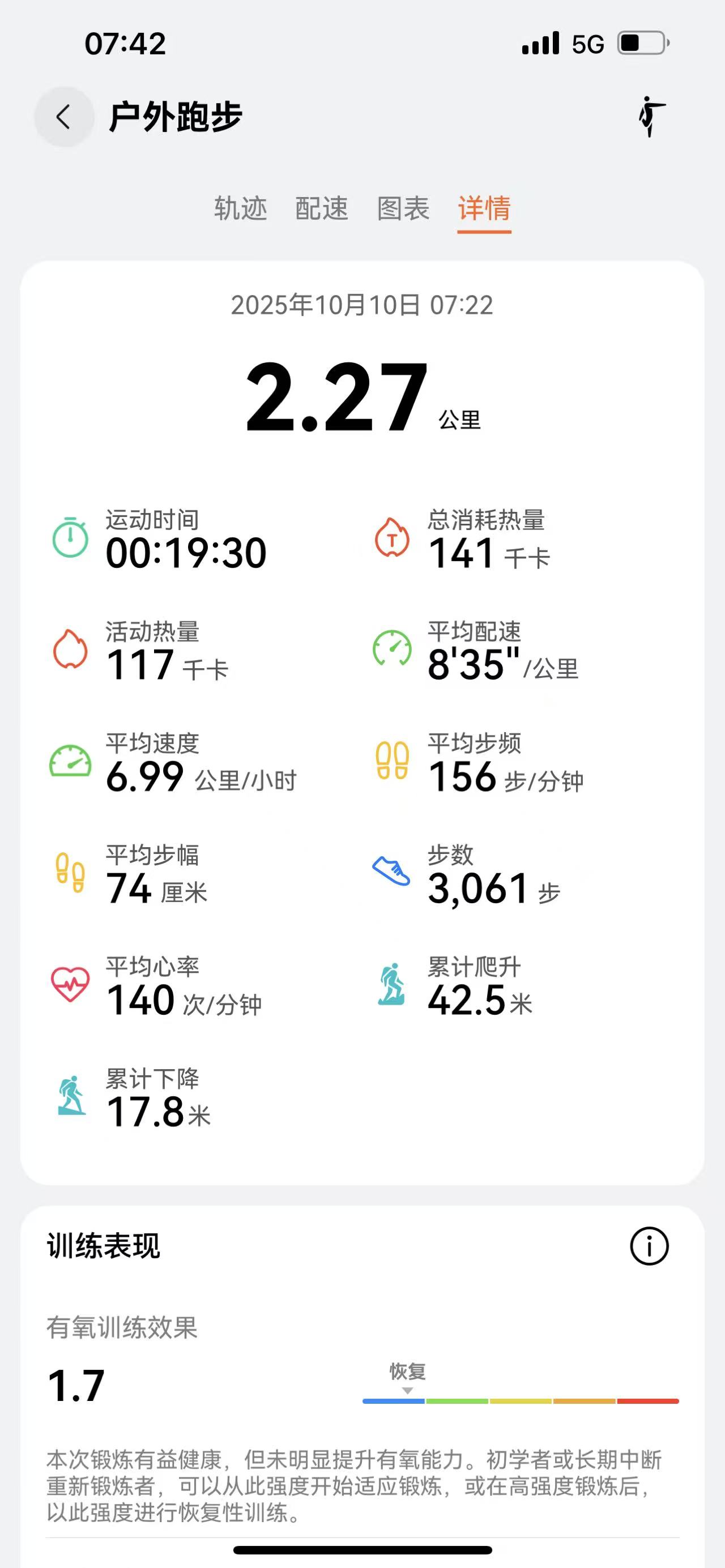 慢跑:2.27公里,累计慢跑:1085.70公里