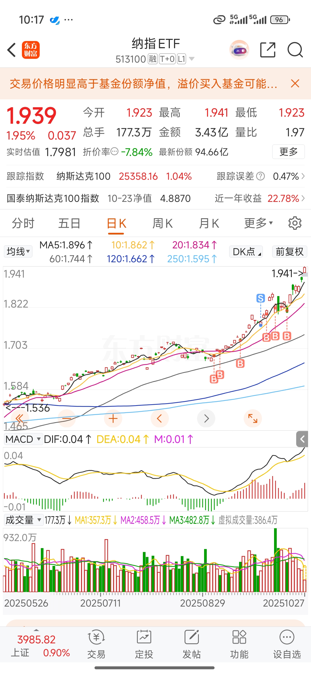 $纳指ETF(SH513100)$ 白白卖出,最终又高于卖出价买回来,国内就找不到这种慢牛的票