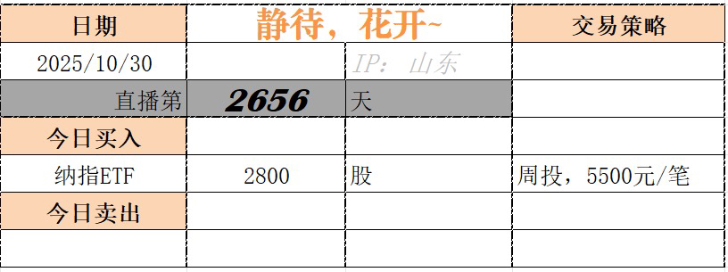 定投第2656天,今日买入纳指ETF2800股,今日盈亏-4.18万元,累计盈亏
