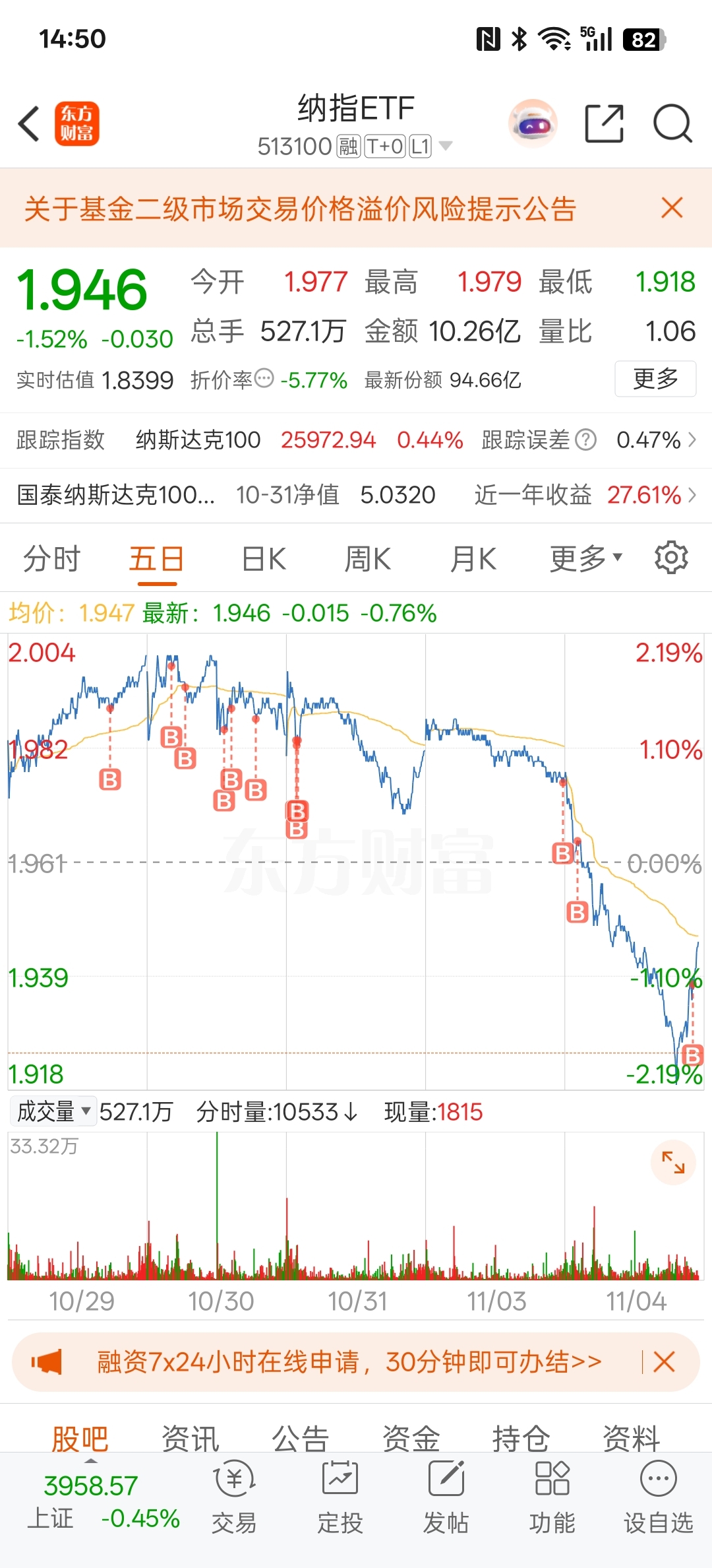 $纳指ETF(SH513100)$ 今天开盘就去掉了一半。