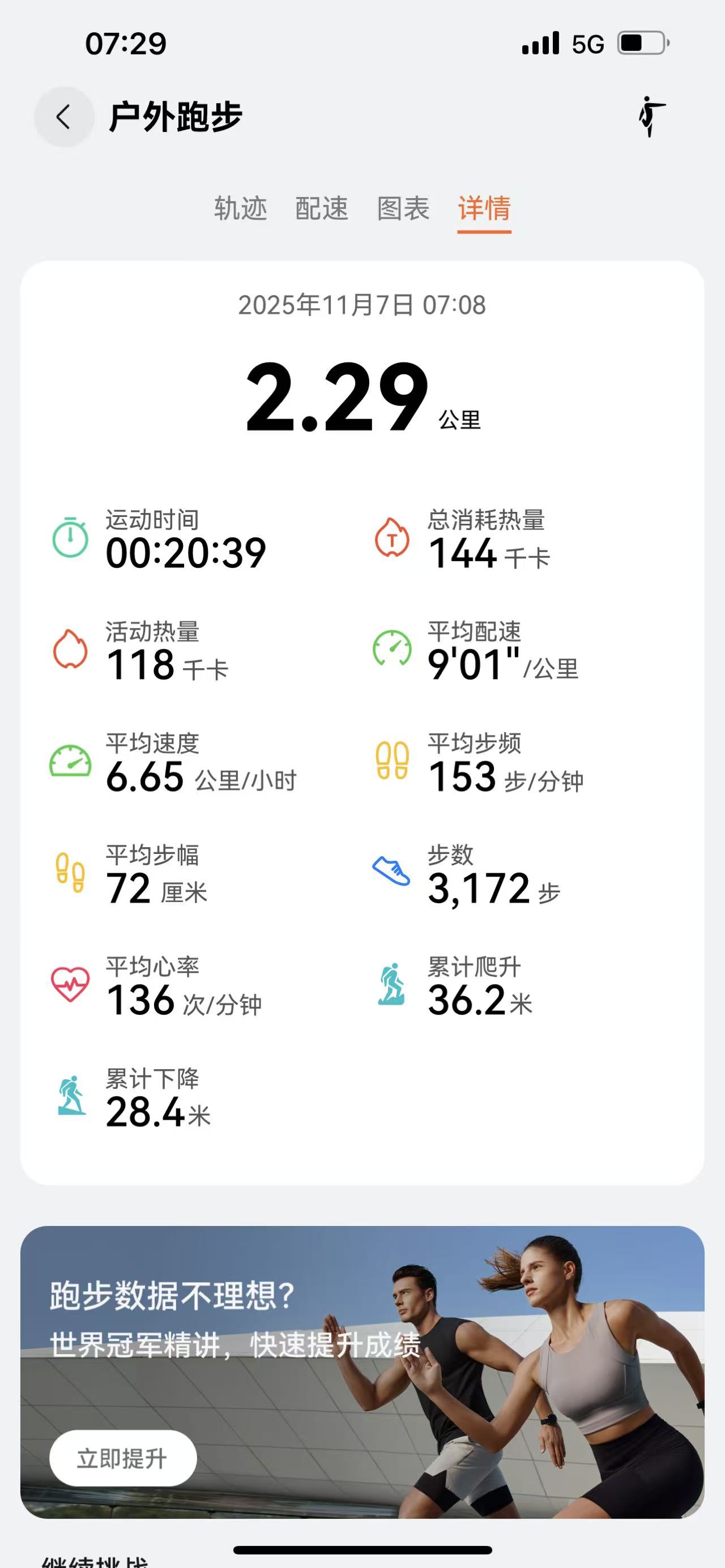 慢跑:2.29公里,累计慢跑:1146.15公里