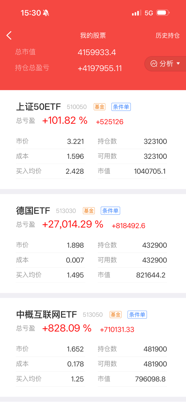 定投第2670天,今日买入纳指ETF2800股,今日盈亏+3.44万元,累计盈亏+419万元,静待花开~(实盘,原创,无小号)