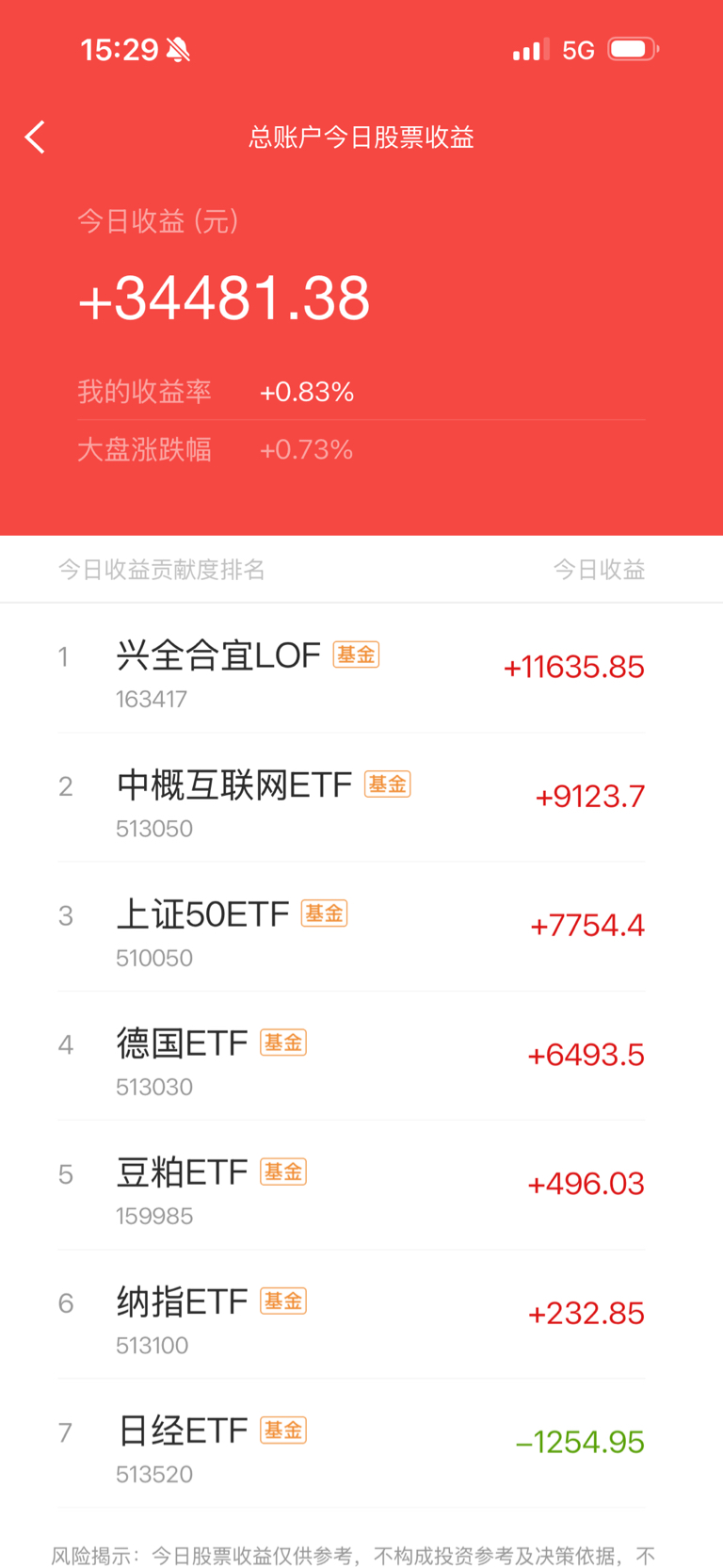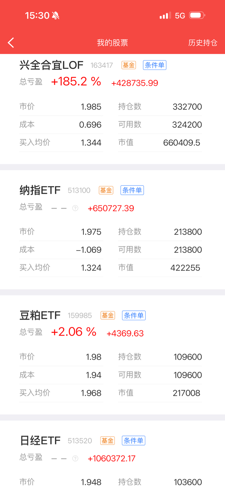 定投第2670天,今日买入纳指ETF2800股,今日盈亏+3.44万元,累计盈亏