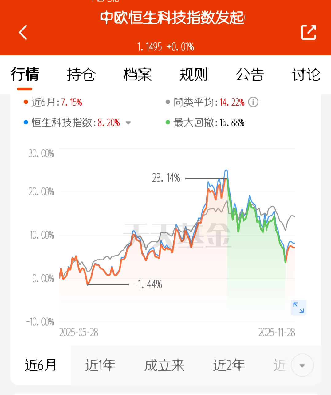 全球资产配置都在重新平衡,港股作为中国核心资产池,吸引了不少外资回流。科技板块更是资金扎堆的地方,中欧恒生科技指数 (QDII) C 近 6 个月涨 7.15%,被动型基金不用择股,直接一键布局一篮子优质标的。$中欧恒生科技指数发起(QDII)C$