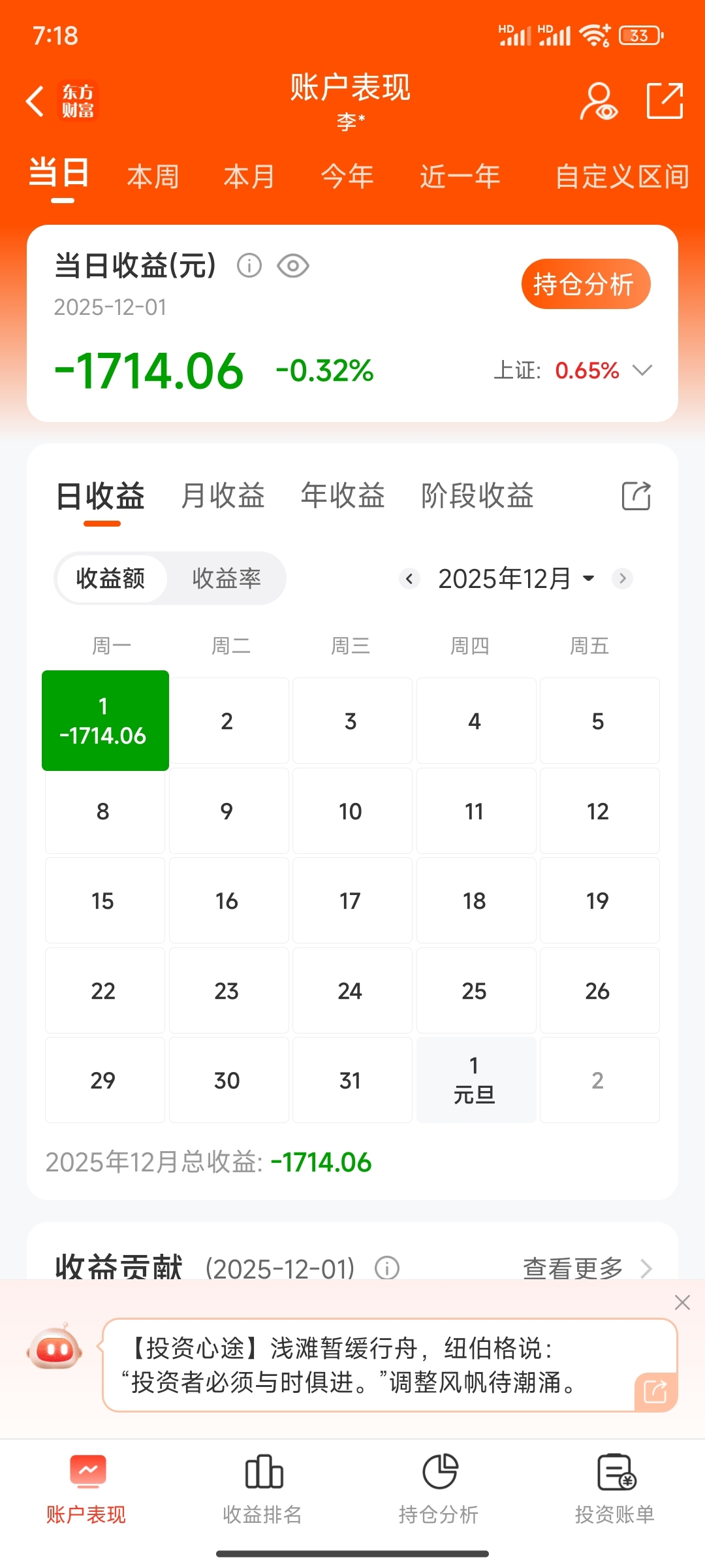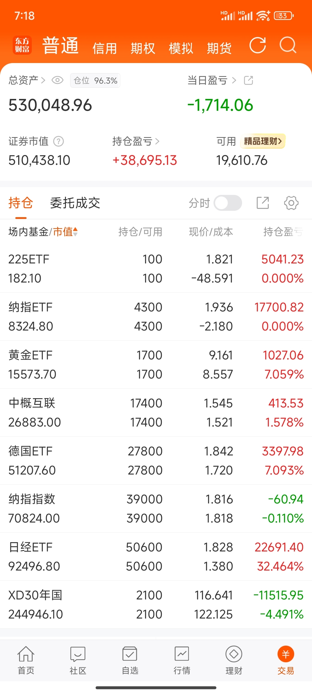 第227天,买入纳指ETF,700股,今日盈亏-1714,总盈亏+38695。.