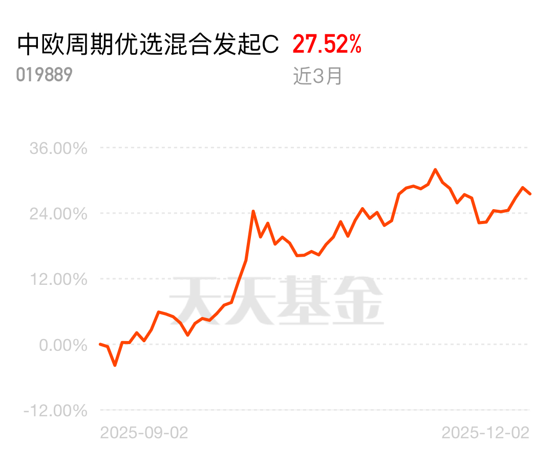 LME 铜价连涨五天势头正猛,资源周期板块迎来资产重估机会,重仓相关标的的基金直接受益。中欧周期优选混合发起 C 近 3 个月 27.52%,重仓中国有色矿业等龙头,调仓反应快,趁行情上车吃肉。$中欧周期优选混合发起C$