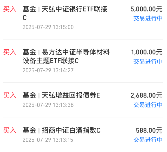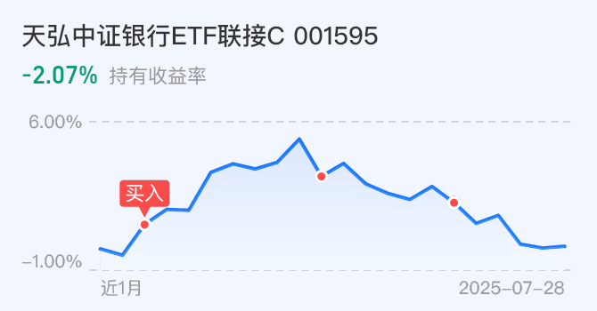 我加仓$天弘中证银行ETF联接C(OTCFUND|001595)$5000元!跟踪的中证银行这会看跌0.8%左右,盘中继续回踩60日均线支撑,调整时间不短了,这个位置我直接大额冲上一笔,在目前利率下行的大背景下,经营稳健、具有稳定股息率的银行板块还是很受长线资金欢迎的。