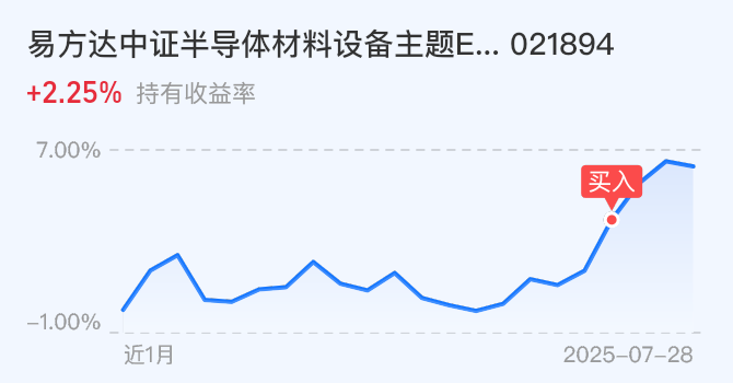 我加仓$易方达半导体设备ETF联接C(OTCFUND|021894)$1000元!跟踪的半导体材料设备指数早盘回踩5日均线支撑后迅速拉升,看来这个位置流入的资金还挺多的,盘中回落一下后又拉起来了,这会看涨1.2%左右,我抓紧加仓一笔。