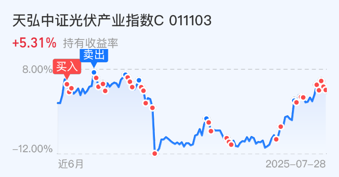 跟踪的中证光伏产业指数这会看涨0.9%左右,今天盘中下探回拉,年线应该有强支撑,我最近连续小加,今天上涨就持仓吃肉不动了。$天弘中证光伏产业指数C(OTCFUND|011103)$