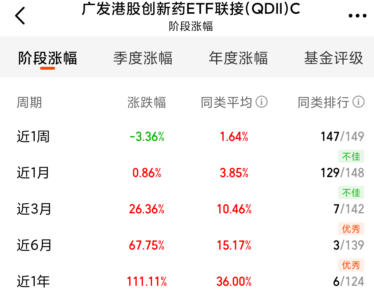 不过看了一下,咱们的 $广发港股创新药ETF联接(QDII)C(OTCFUND|019671)$没有接盘这只个股,过往表现也非常强,害怕踩雷的可以看一下。