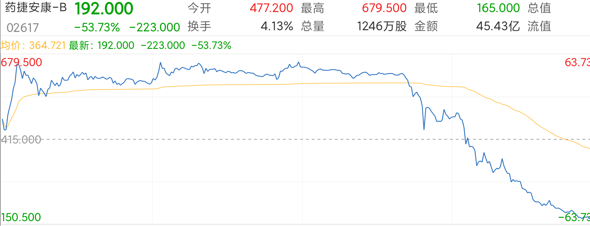 近期港股创新药传出来一则大瓜,一只上市三个月时间的个股药捷安康,股价从13.15港元/股飙涨至最高679.5港元/股,市值一度超2000亿港元,超过康方生物、信达生物。9月16日午间,药捷安康发布信息披露公告,提醒股价异常波动,之后股价大跌超50%,跌至190港元/股附近。