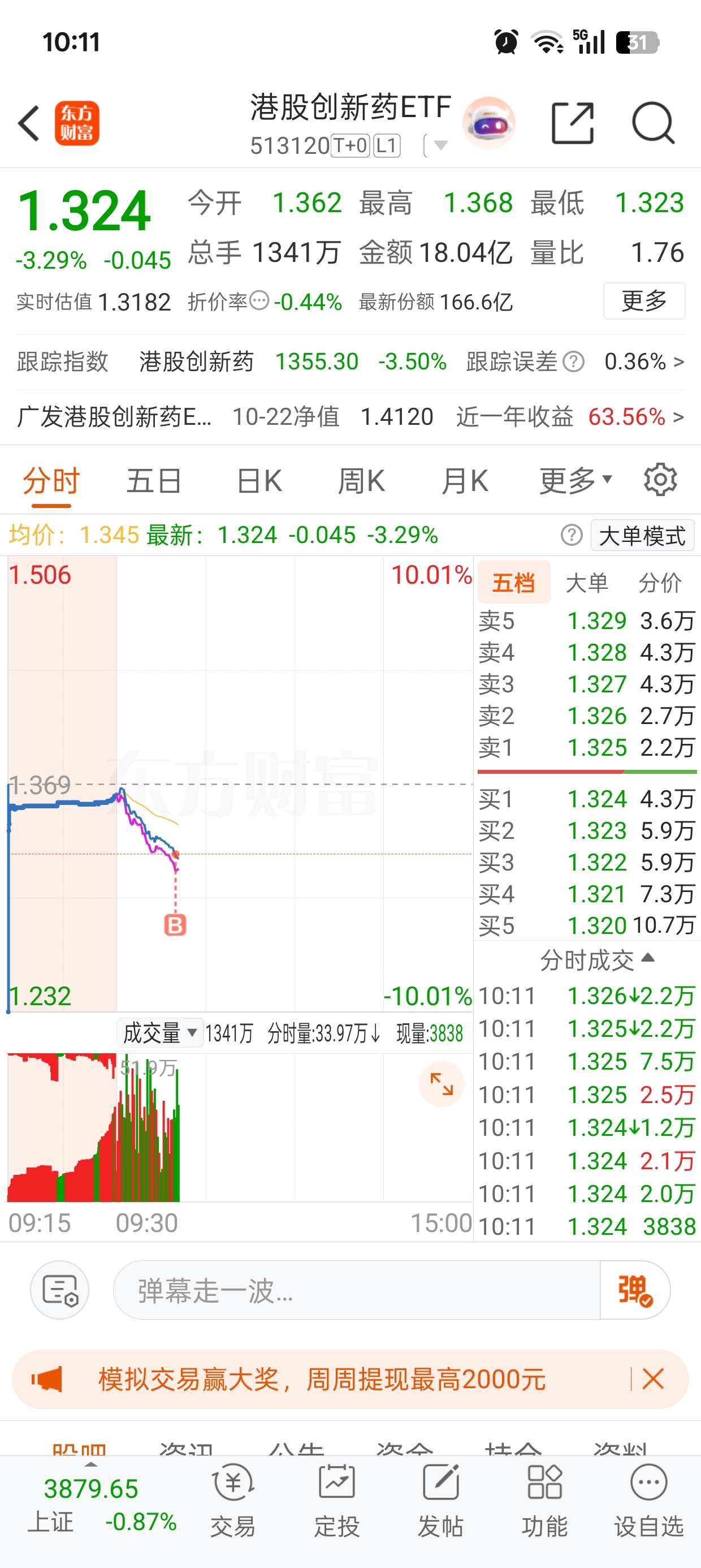 $港股创新药ETF(SH513120)$ 这个位置你不能还跌吧?