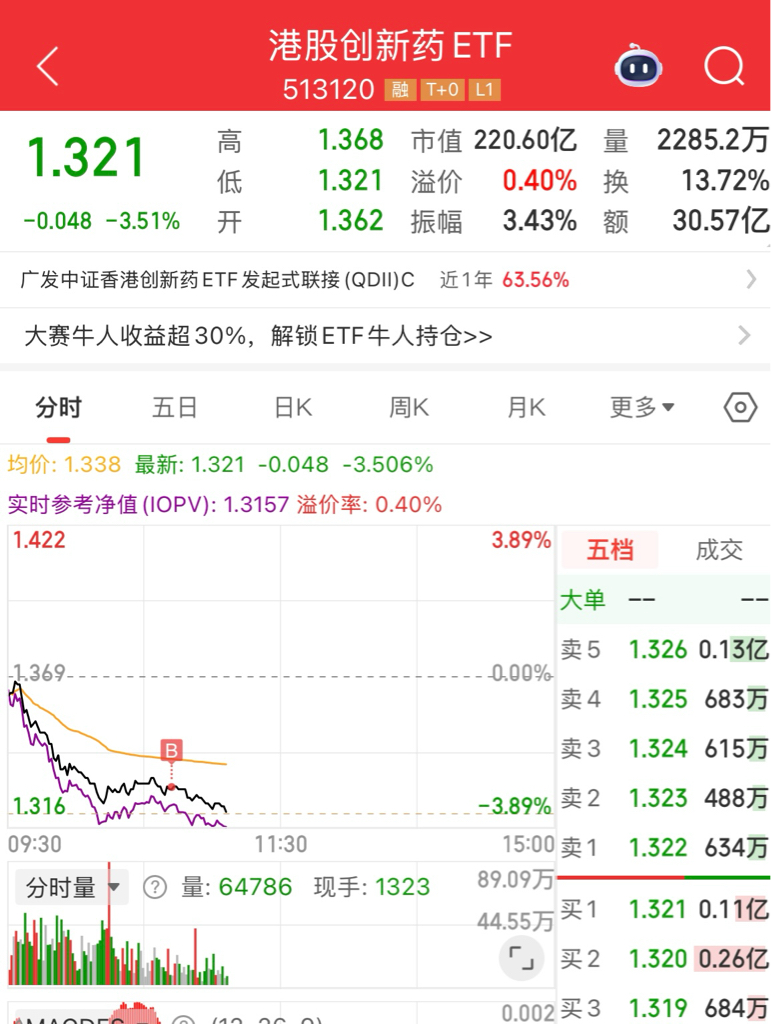 $港股创新药ETF(SH513120)$ 如果跌破1.30在买一笔