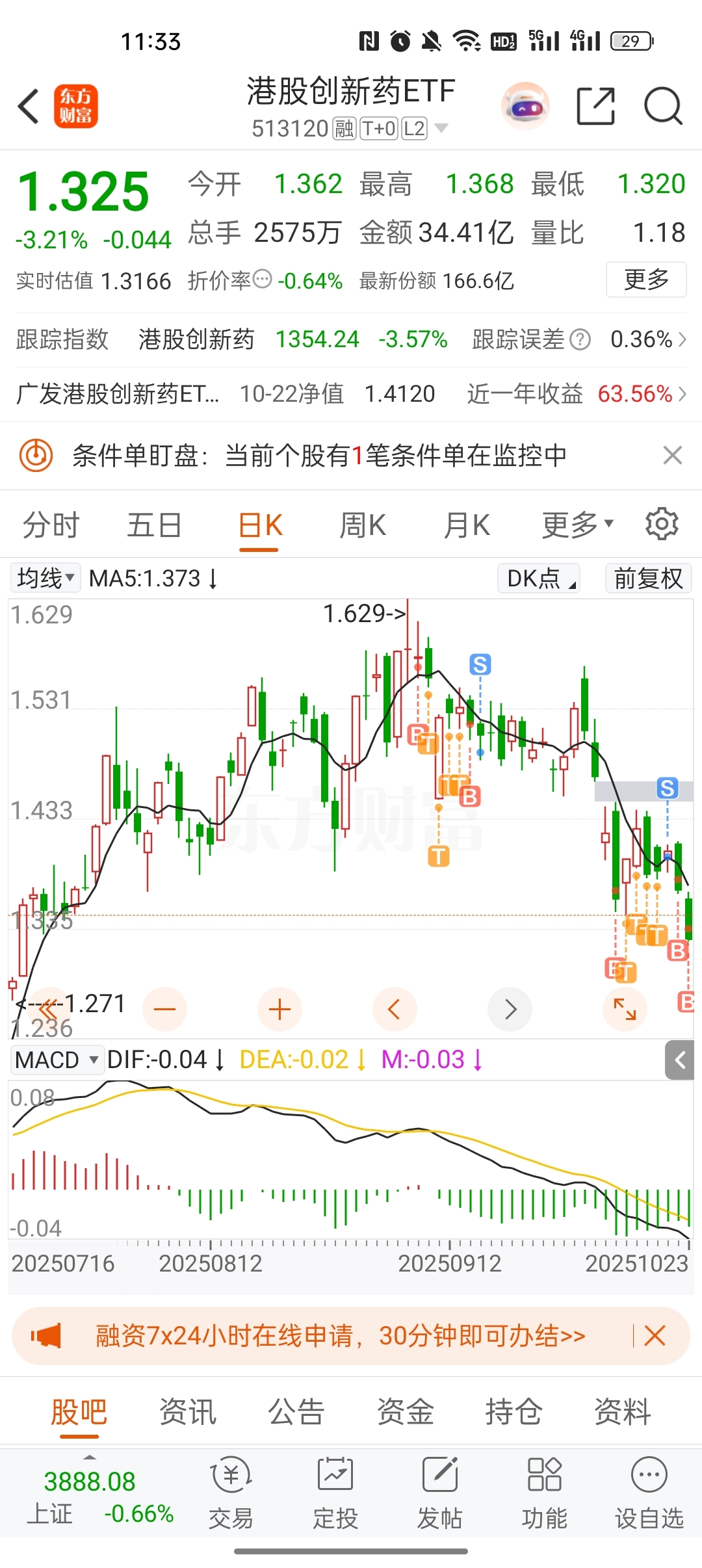 $港股创新药ETF(SH513120)$ 看我做T大法