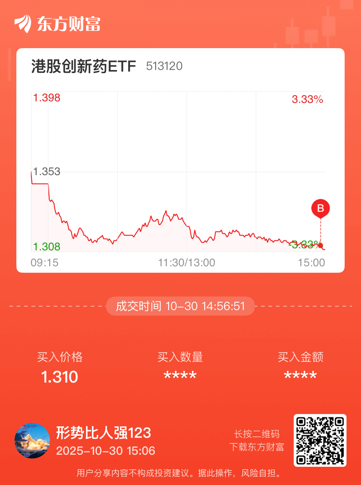 温馨提示: 1.根据《证券法》规定,禁止编造、传播虚假信息或者误导性信息,扰乱证券市场;2.用户在本社区发表的所有资料、言论等仅代表个人观点,与本网站立场无关,不对您构成任何投资建议。用户应基于自己的独立判断,自行决定证券投资并承担相应风险。《东方财富社区管理规定》