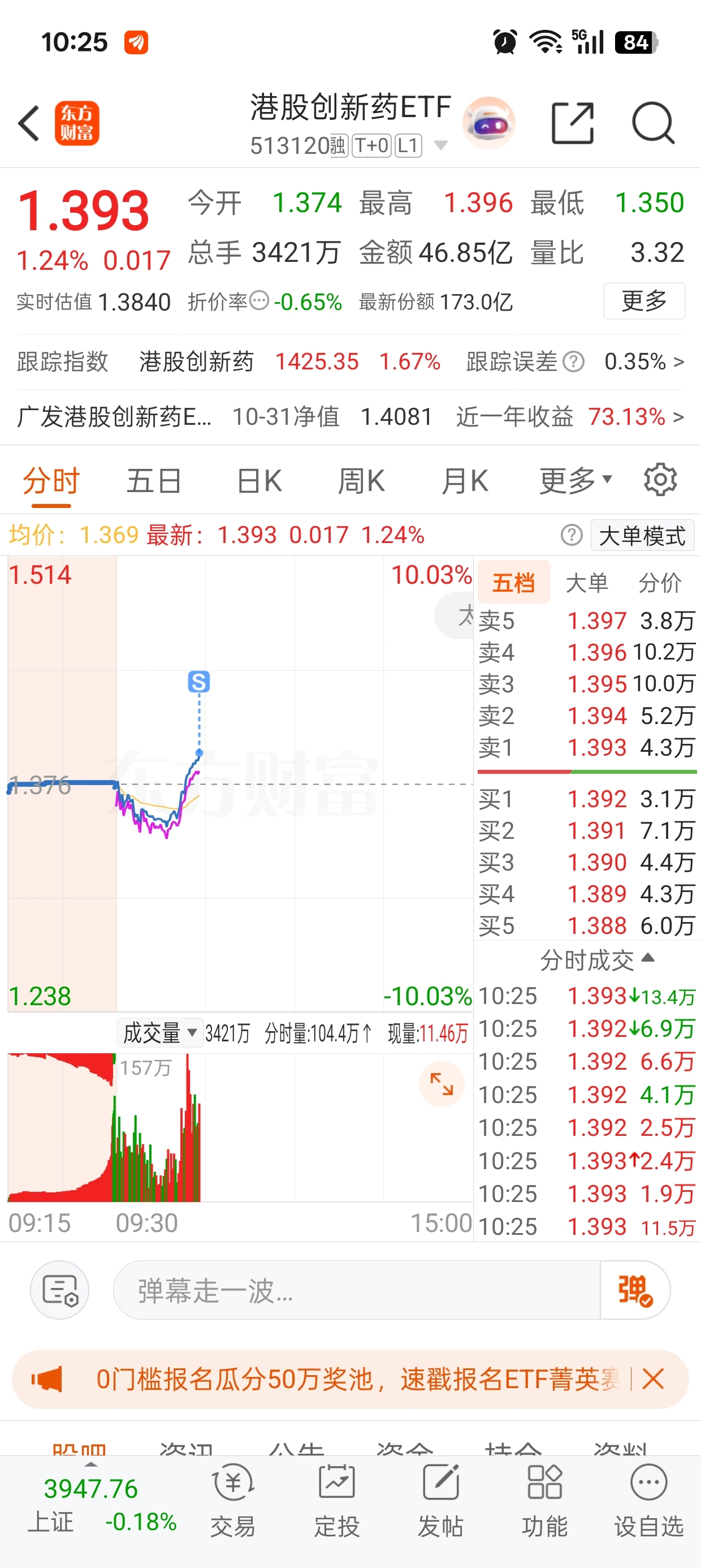 $港股创新药ETF(SH513120)$ 95卖了。。。