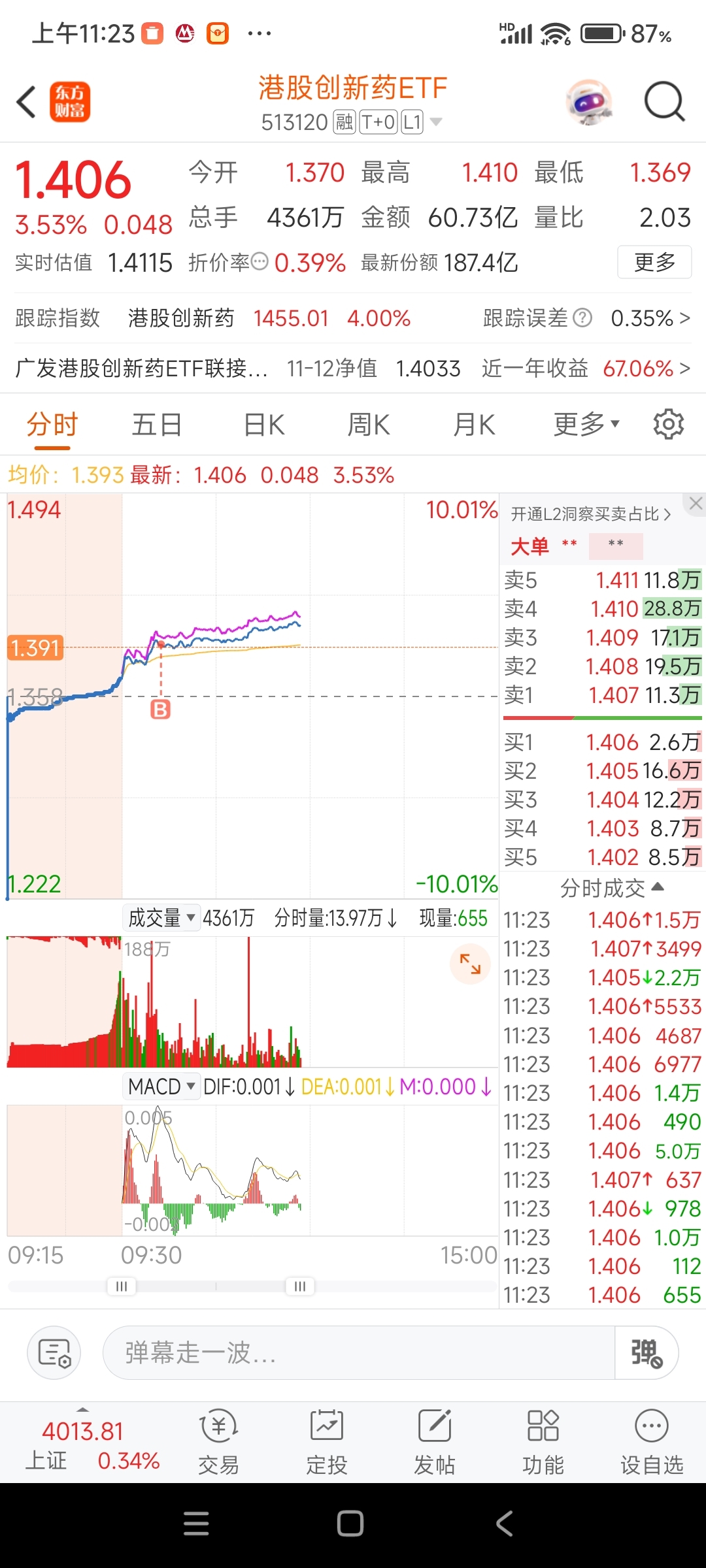 $港股创新药ETF(SH513120)$ 今天追高了,吃饭时看了一下还好涨上去了。