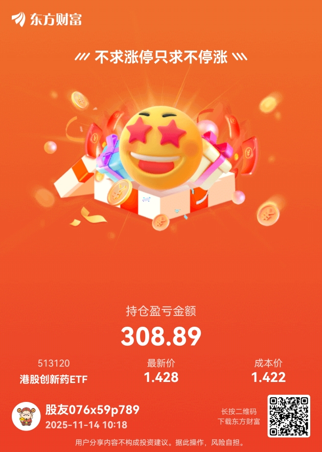 $港股创新药ETF(SH513120)$ 接近三个月,回本!!!