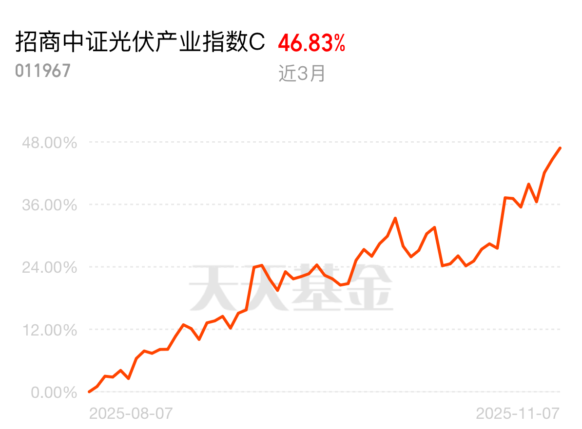 光伏企业的盈利修复态势明显,赚钱能力越来越强,行业的盈利能力在提升。招商中证光伏产业指数C近3个月涨了46.83%,跟着企业盈利增长,收益也水涨船高。