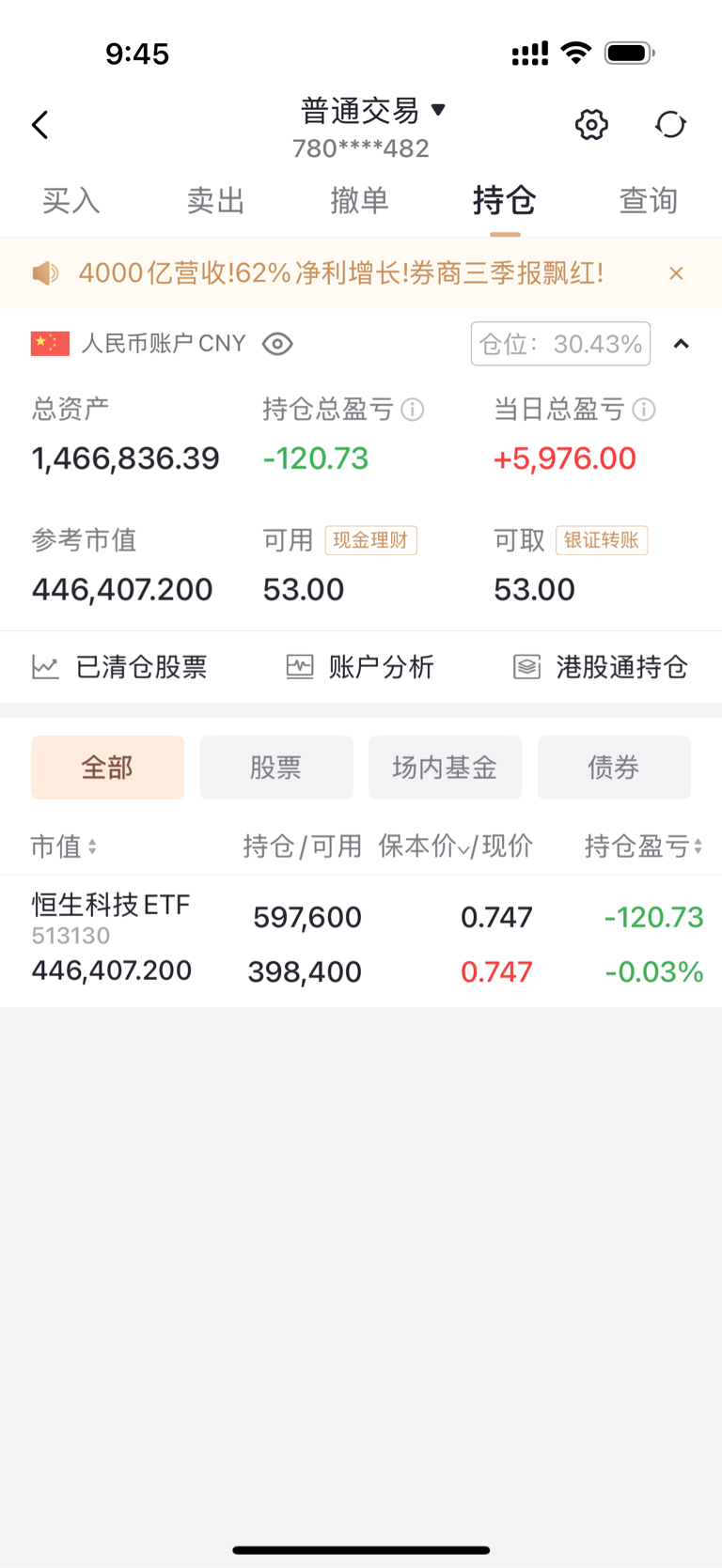 $恒生科技ETF(SH513130)$ 终于回本了从0.83建仓 一直加仓