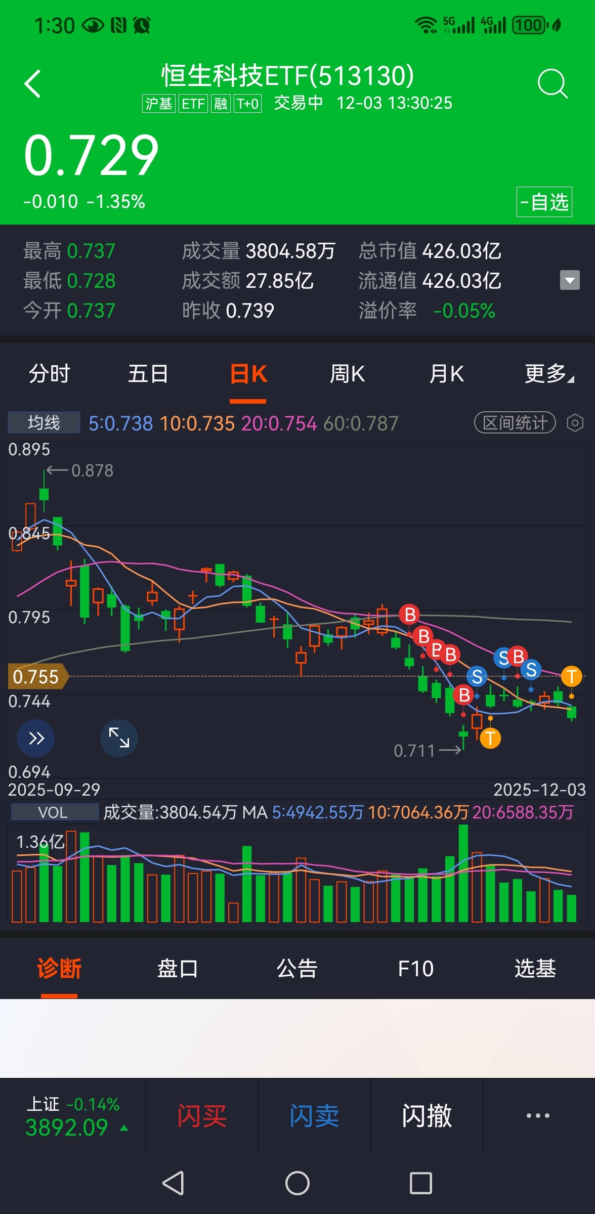 $恒生科技ETF(SH513130)$ 不知不觉已经亏3个点了