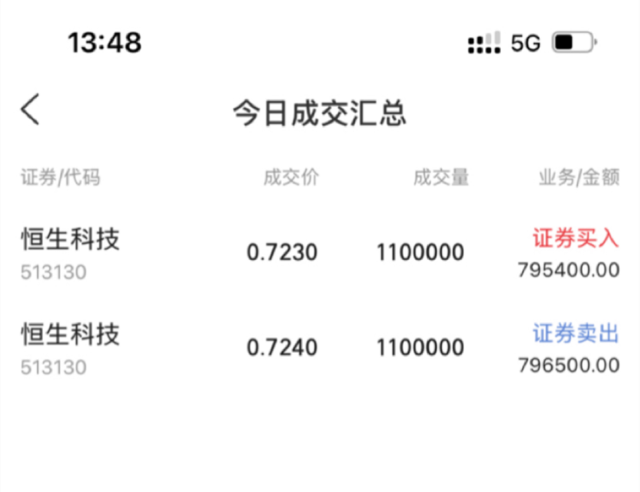 $恒生科技ETF(SH513130)$ 做个小T,降低成本#炒股日记#