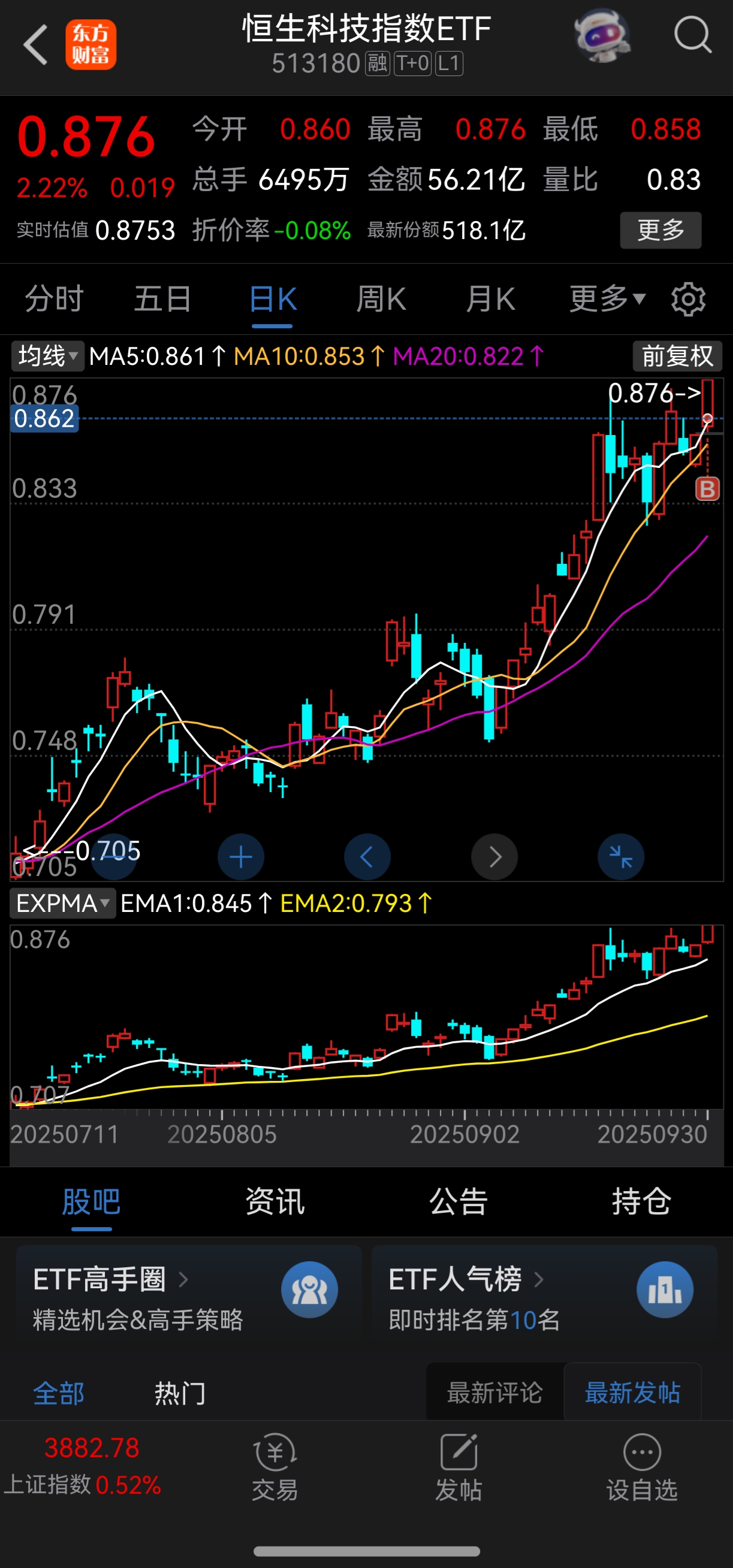 $恒生科技指数ETF(SH513180)$ 多头趋势跟了