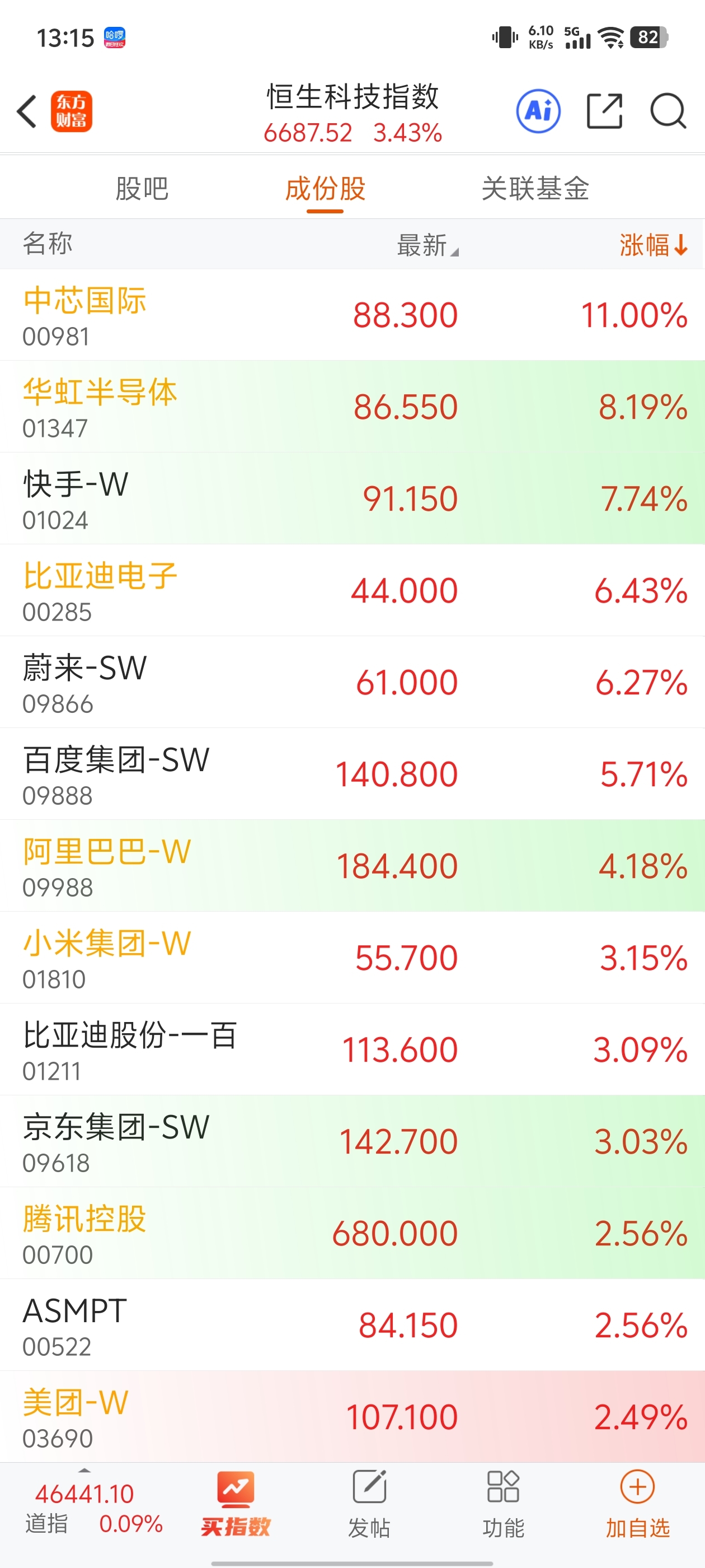 $恒生科技指数ETF(SH513180)$ 这涨势etf应该也有3%+吧