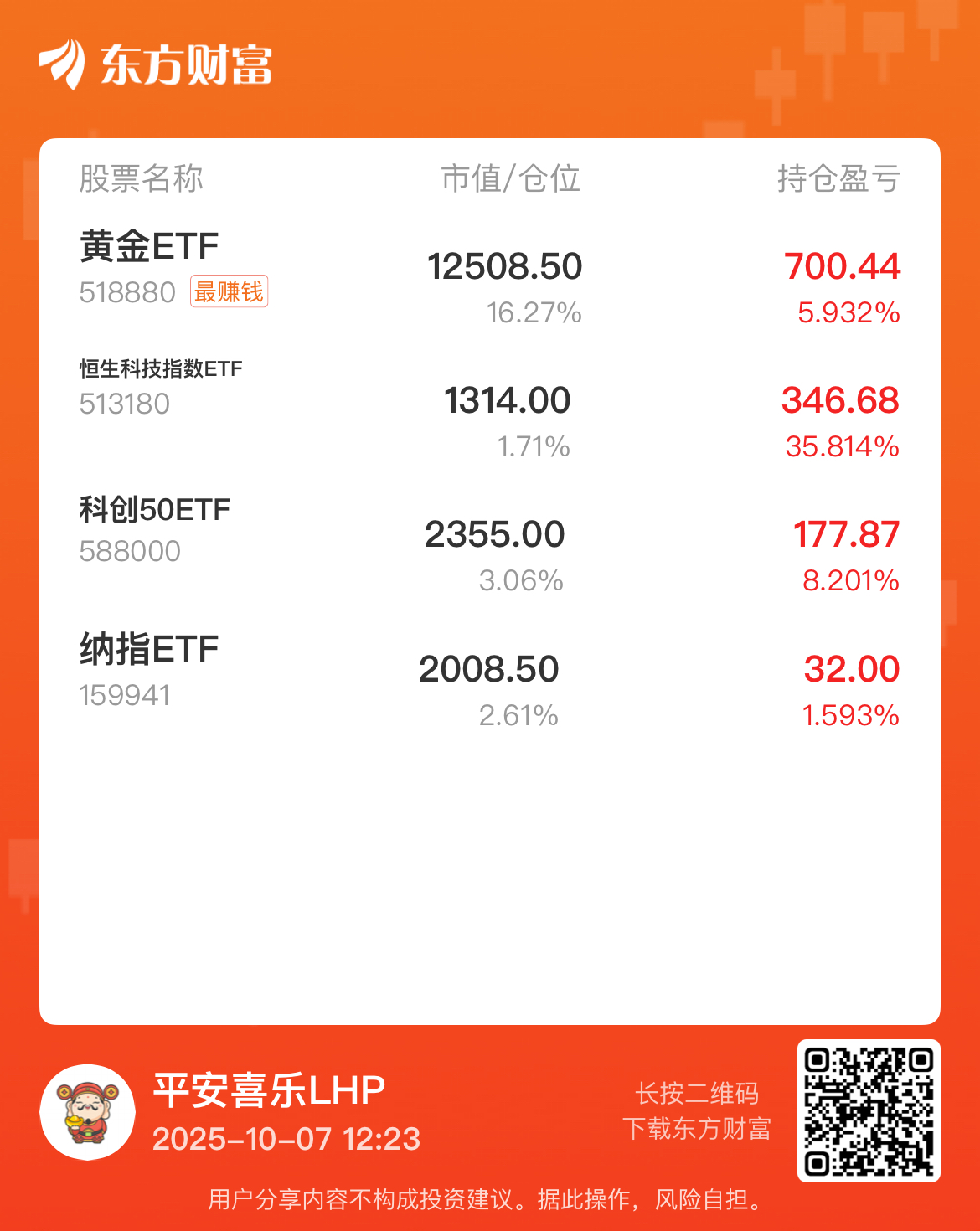 $恒生科技指数ETF(SH513180)$ $科创50ETF(SH588000)$ $纳指ETF(SZ159941)$ 黄金ETF518880